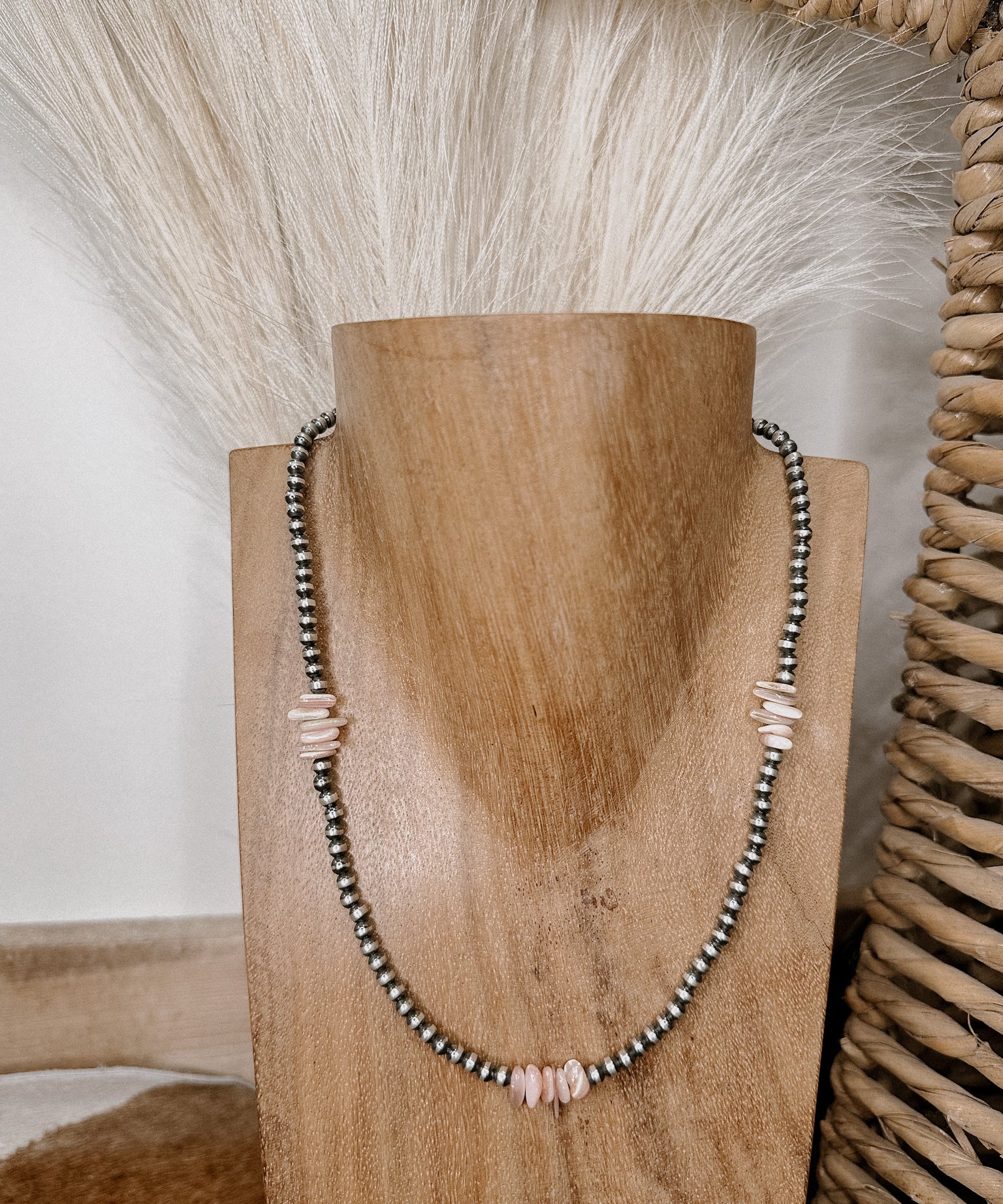 Navajo Pearl + Triple Pink Conch Chippy Necklace