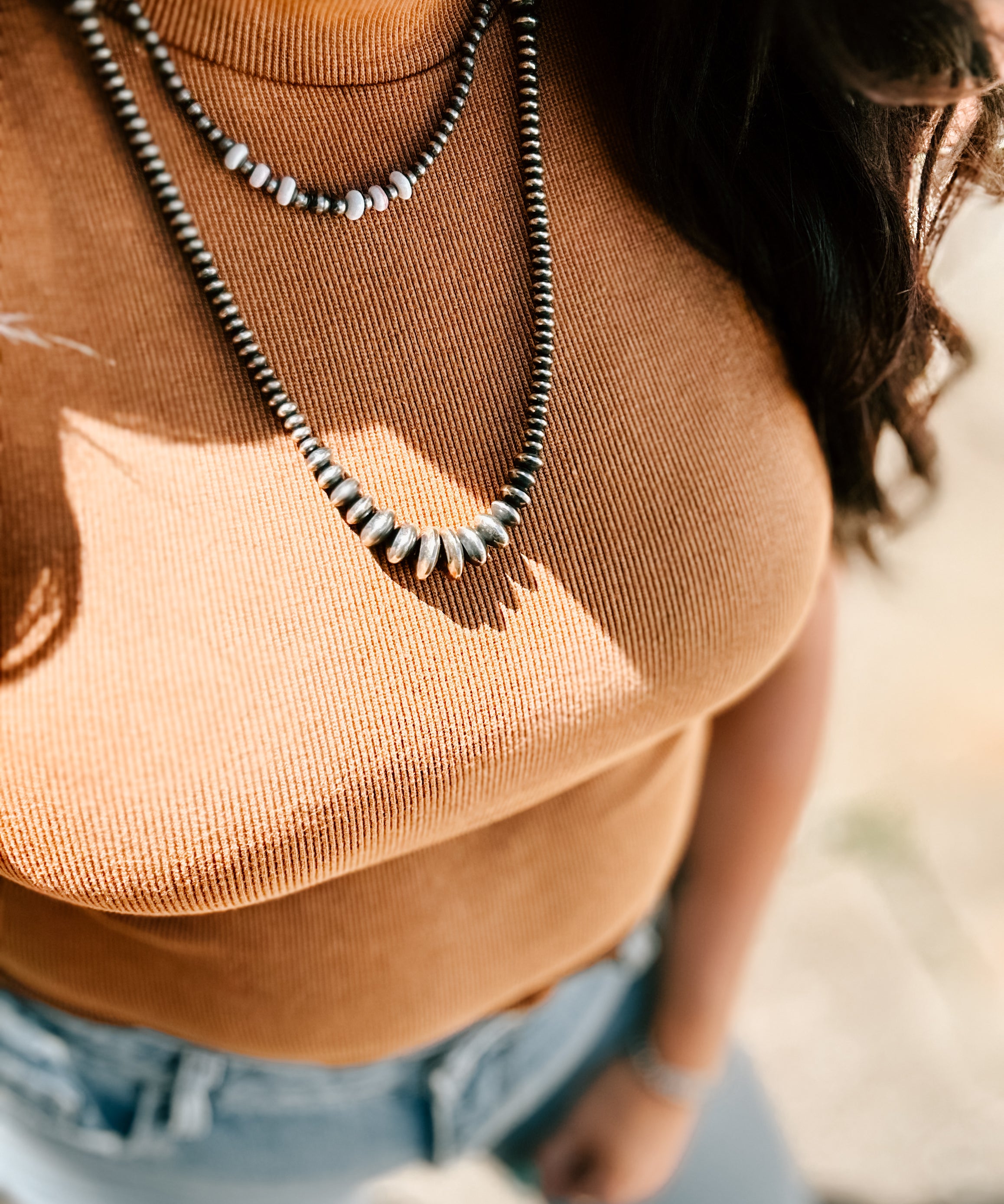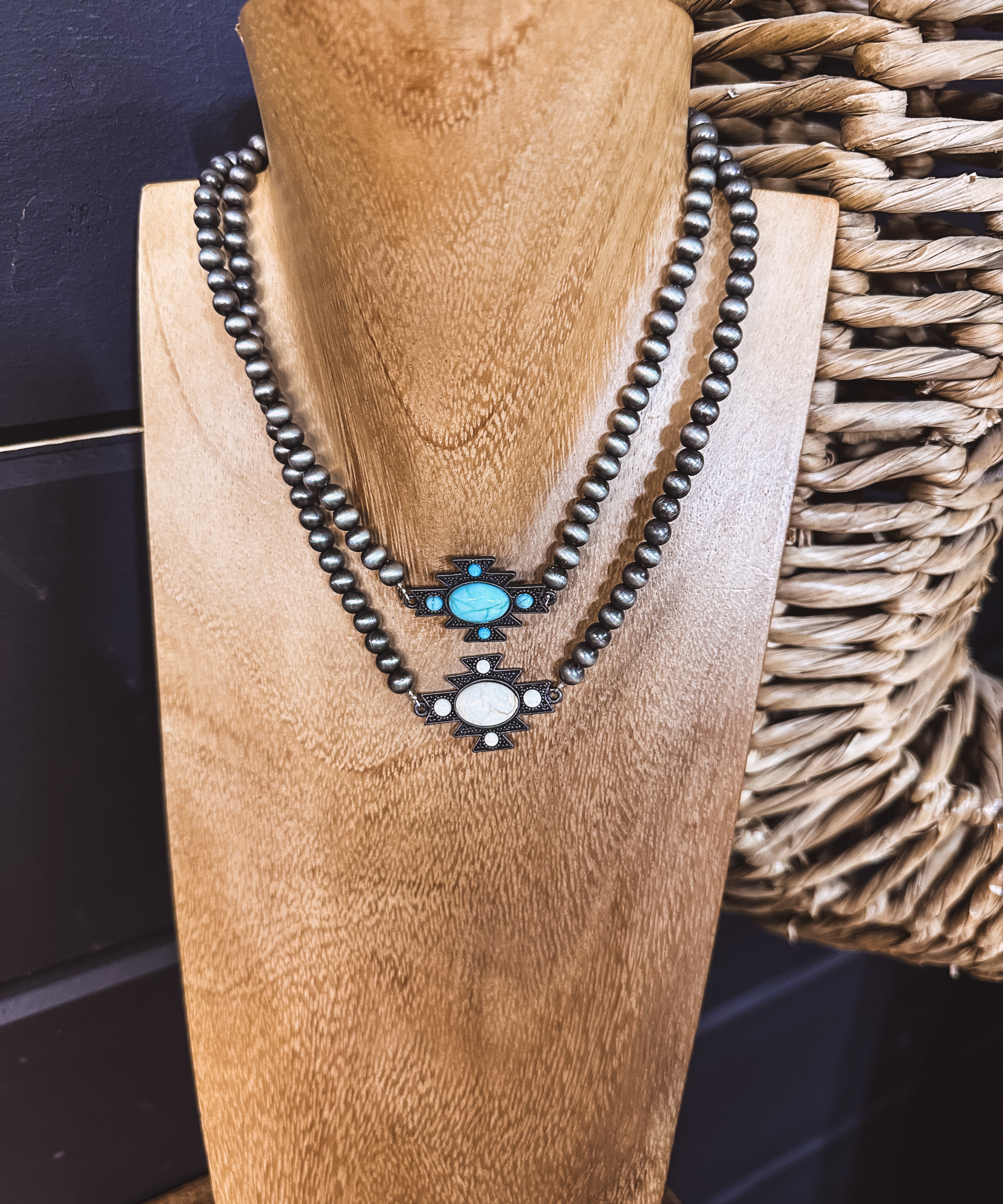 Western Aztec Stone Faux Navajo Pearl Necklace
