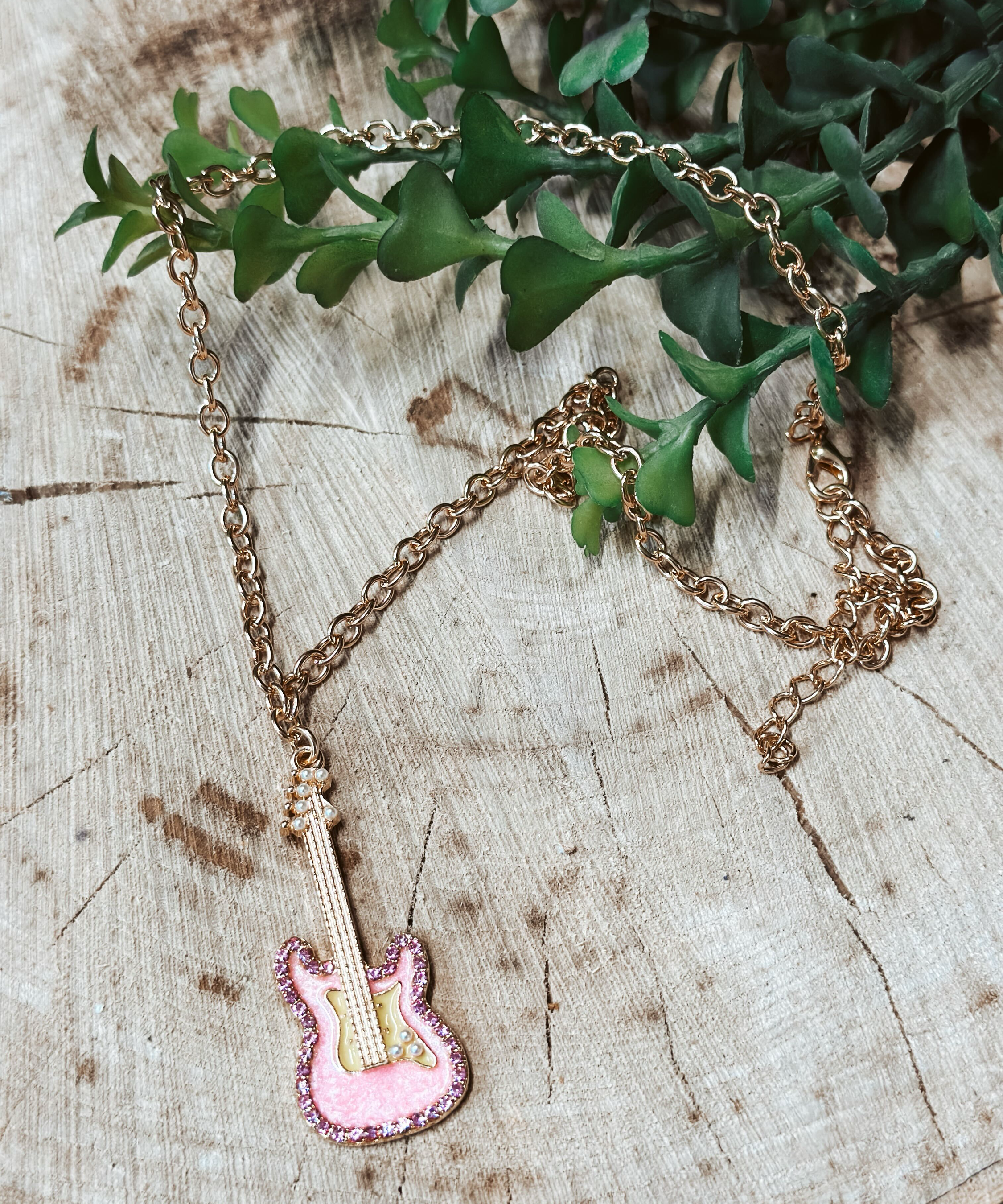Pink Guitar Necklace