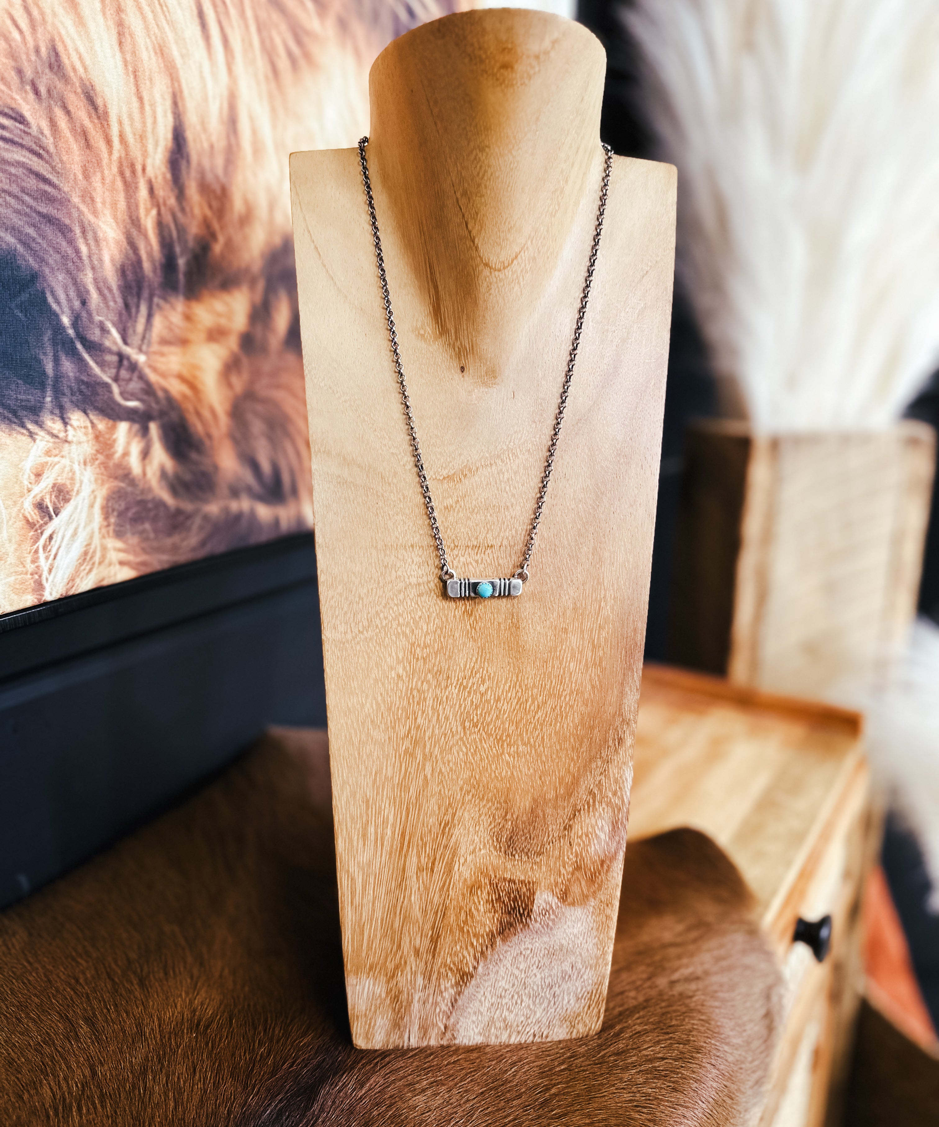Thick Bar Engraved Turquoise Necklace