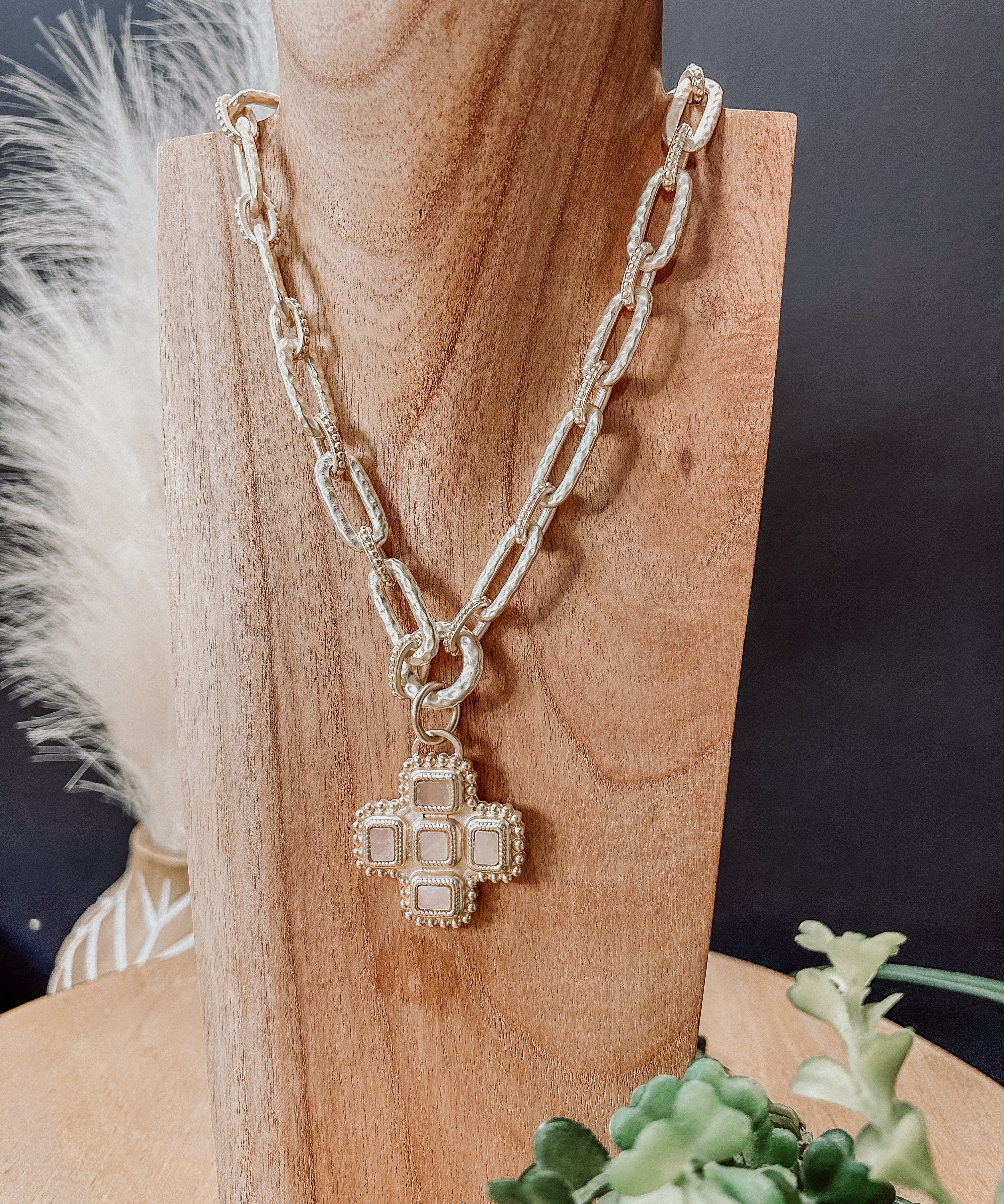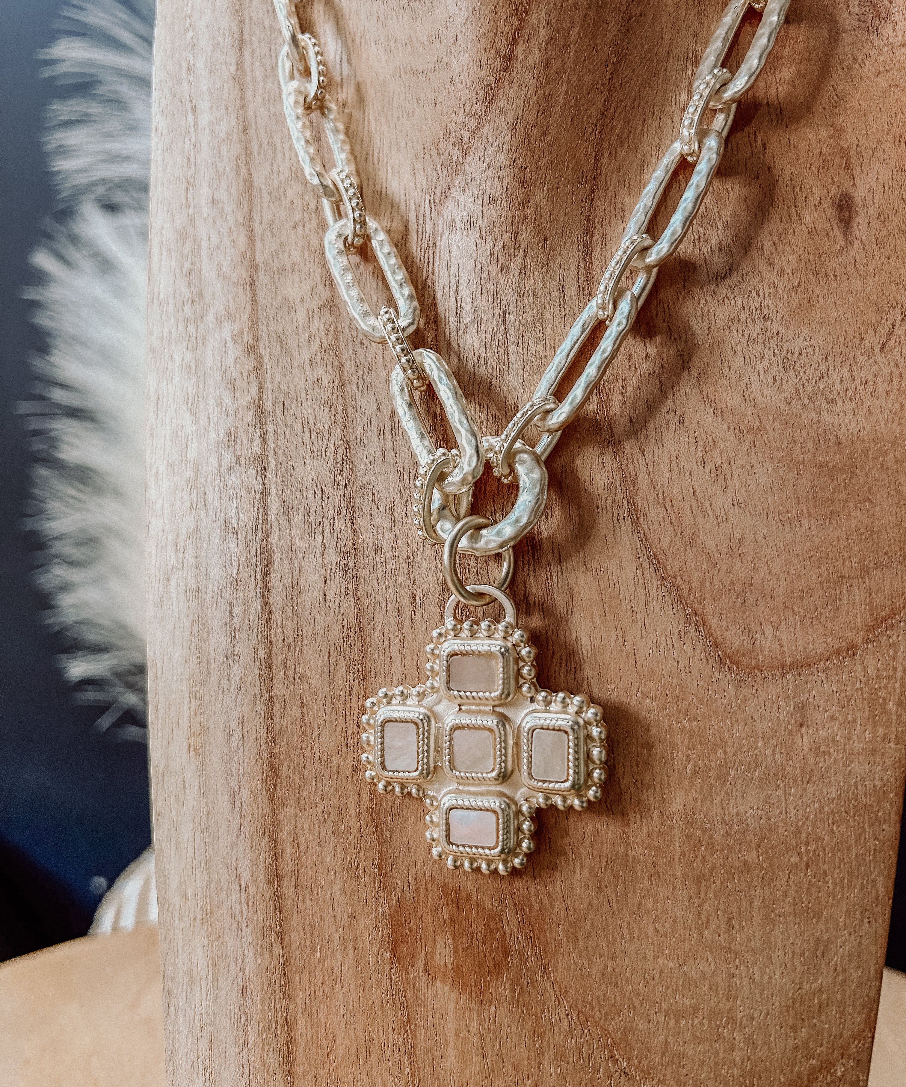 CROSS MY HEART BRUSHED GOLD NECKLACE