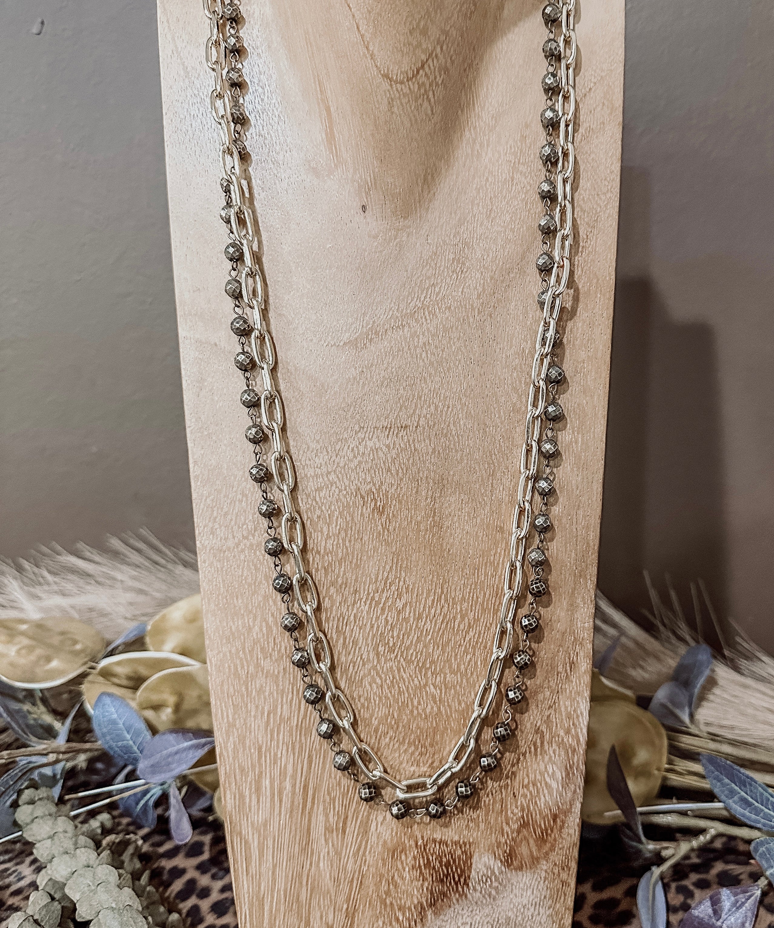 Long Double Glitz Brushed Olive Necklace