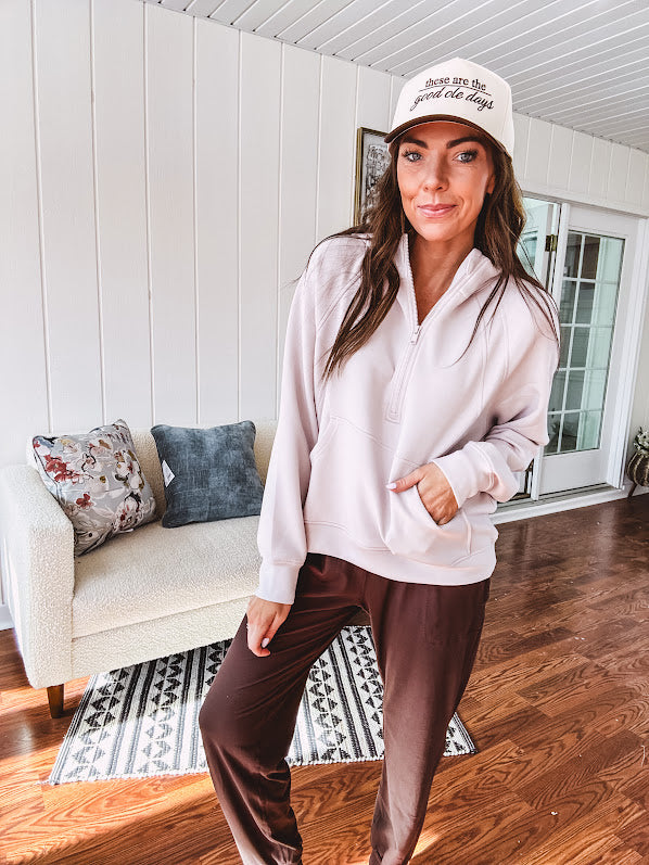 Slip into pure comfort with this dreamy modal hoodie—featuring a convenient quarter-zip front, cozy kangaroo pouch, and clever thumb holes that keep your hands warm without sacrificing style. Perfect for lounging, running errands, or effortlessly blending casual and athletic vibes.