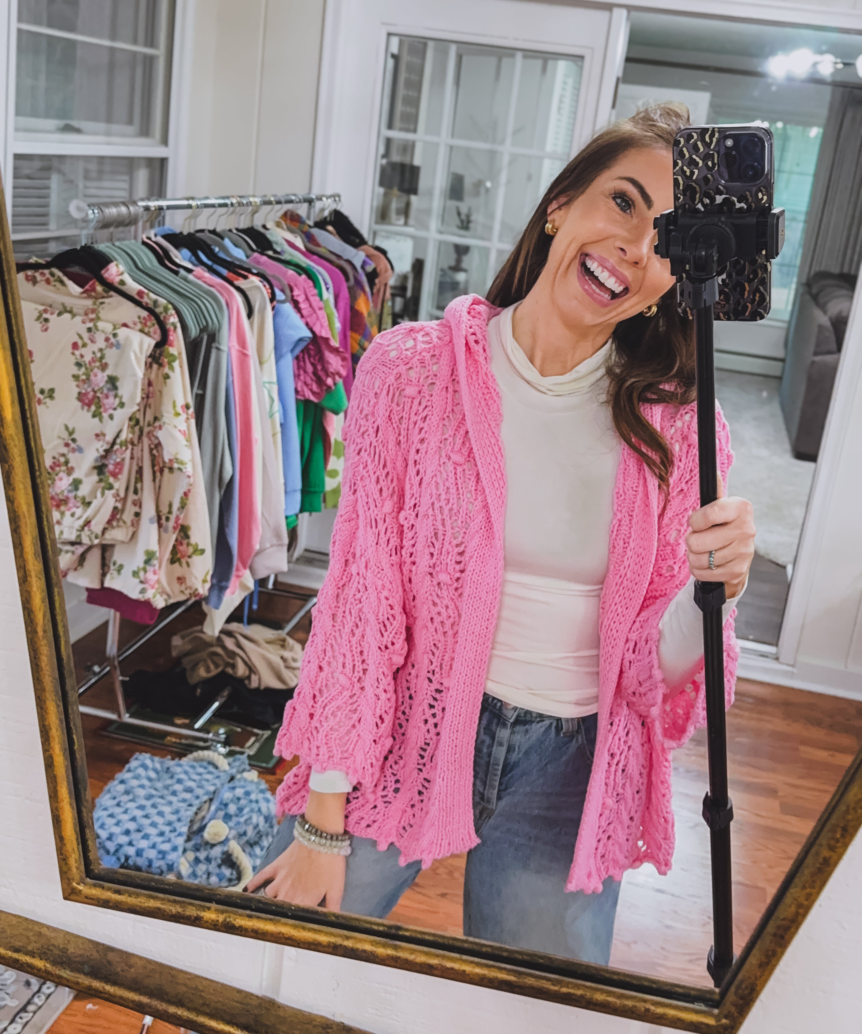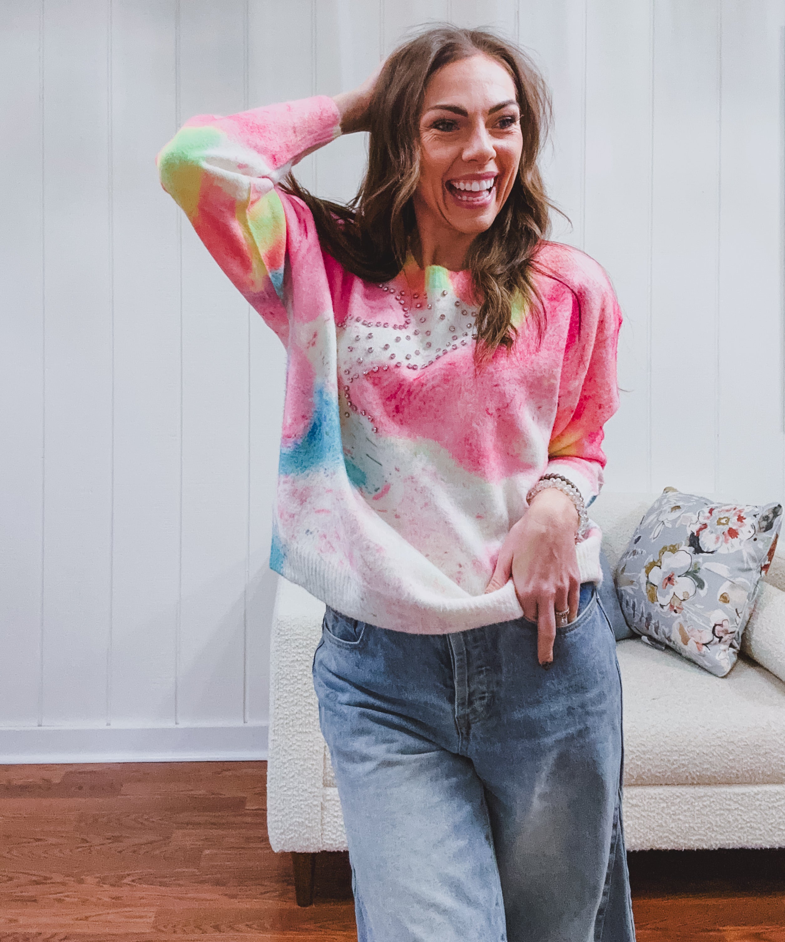 Pink Pastel Go With the Flow Rhinestone Sweater