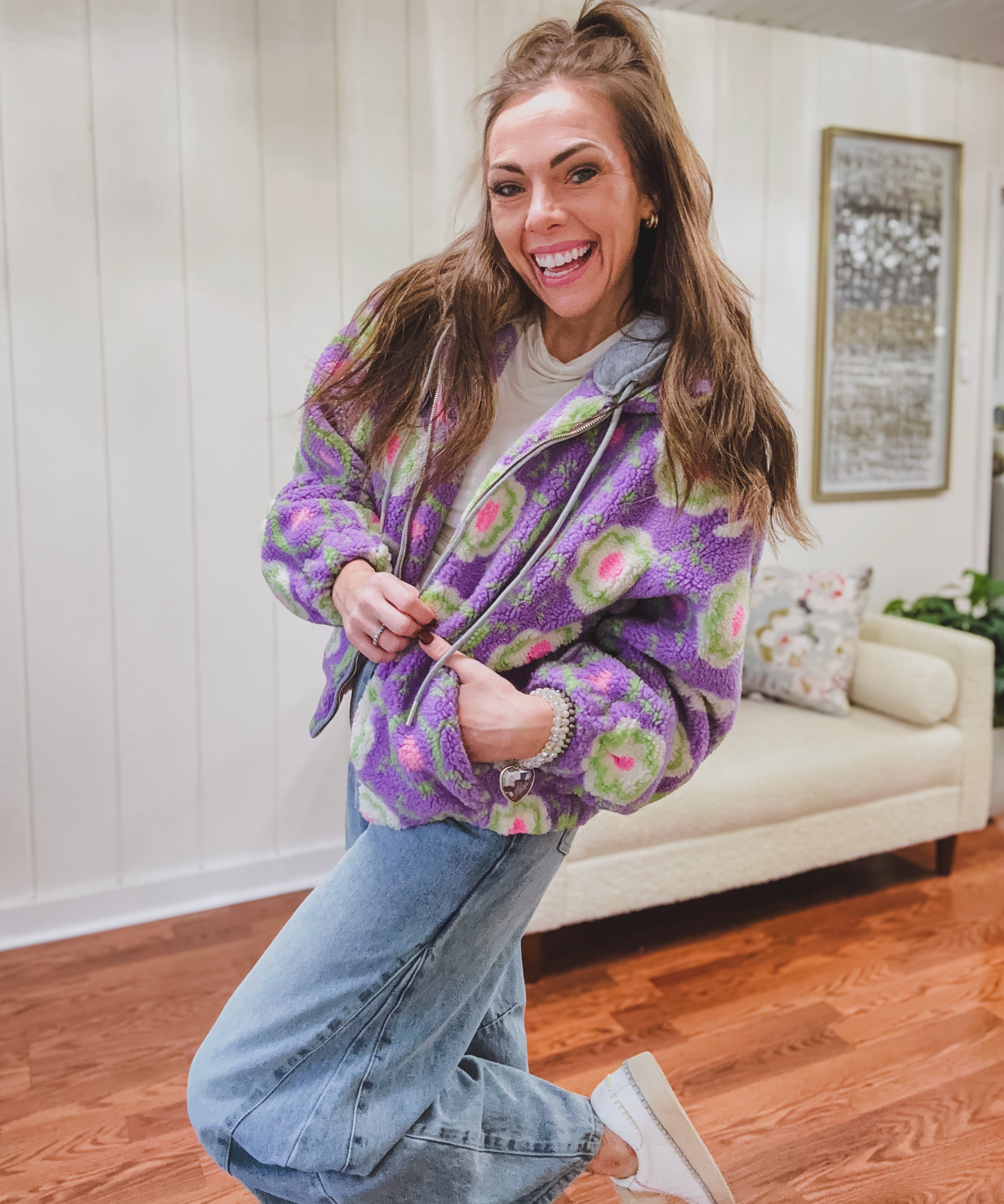 Lavender Floral Sherpa Jacket