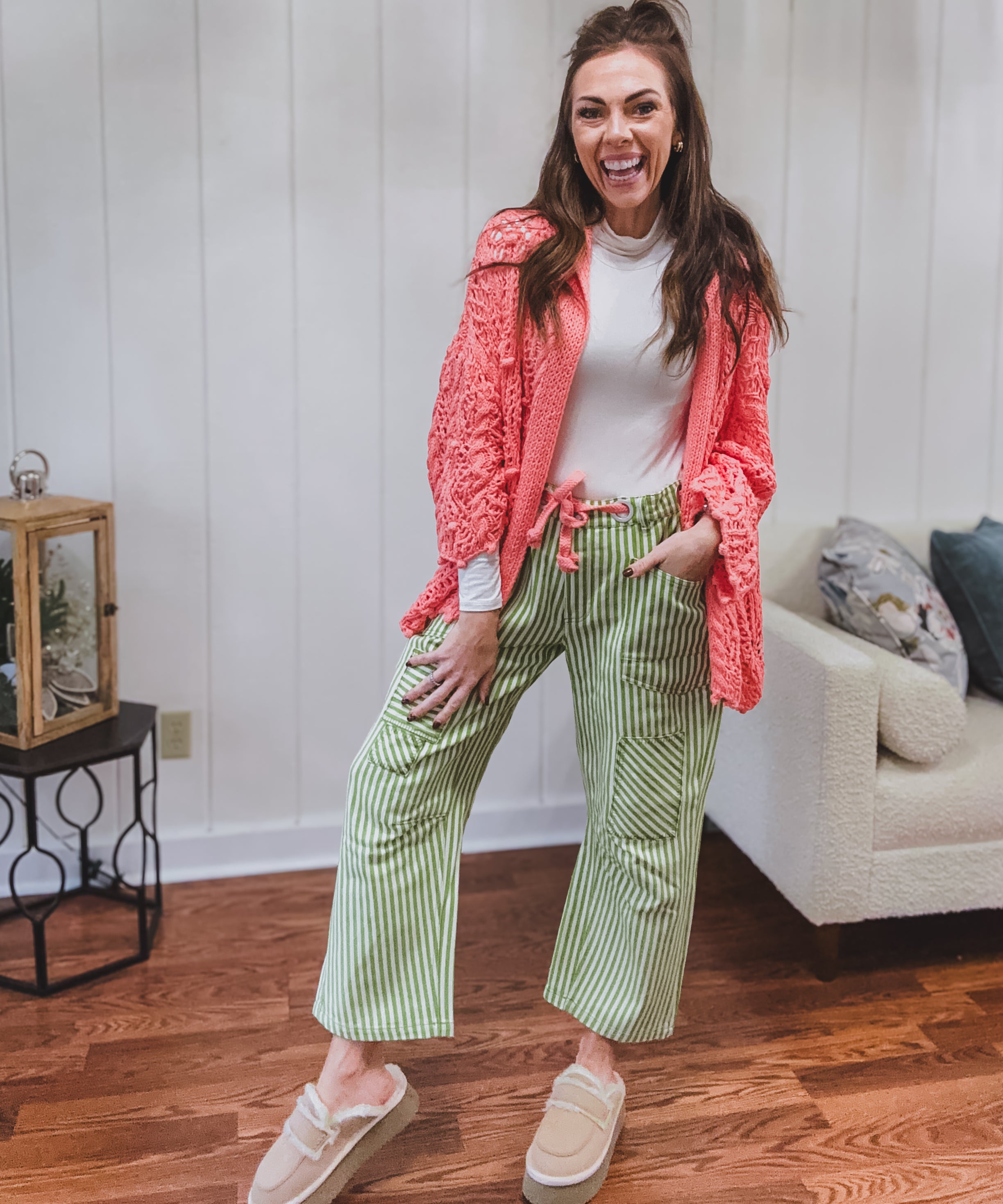 Lime Striped Twill Patch Barrel Pant