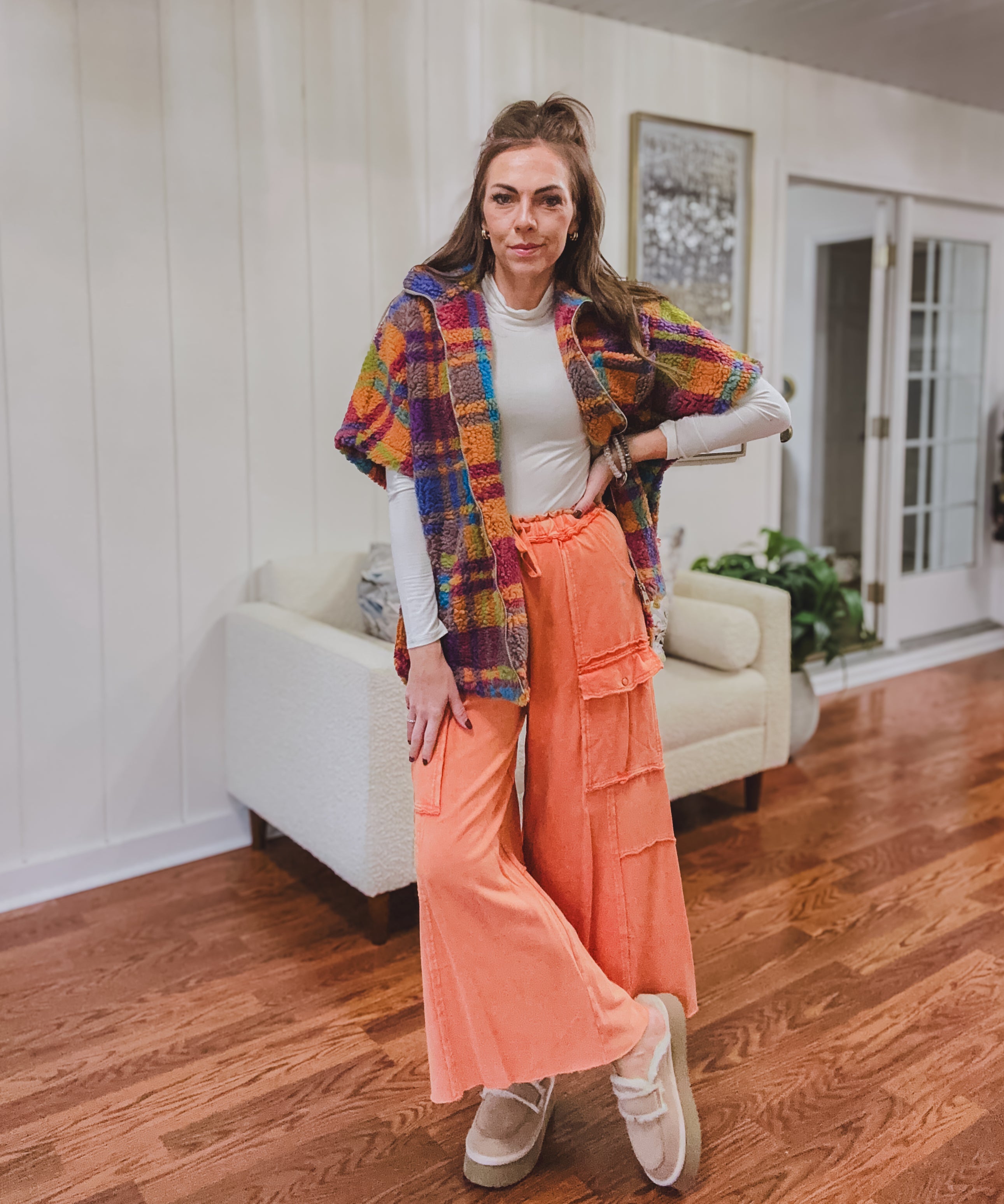 Faded Rust Orange Mineral Wash Wide Leg Utility Pant | Preorder