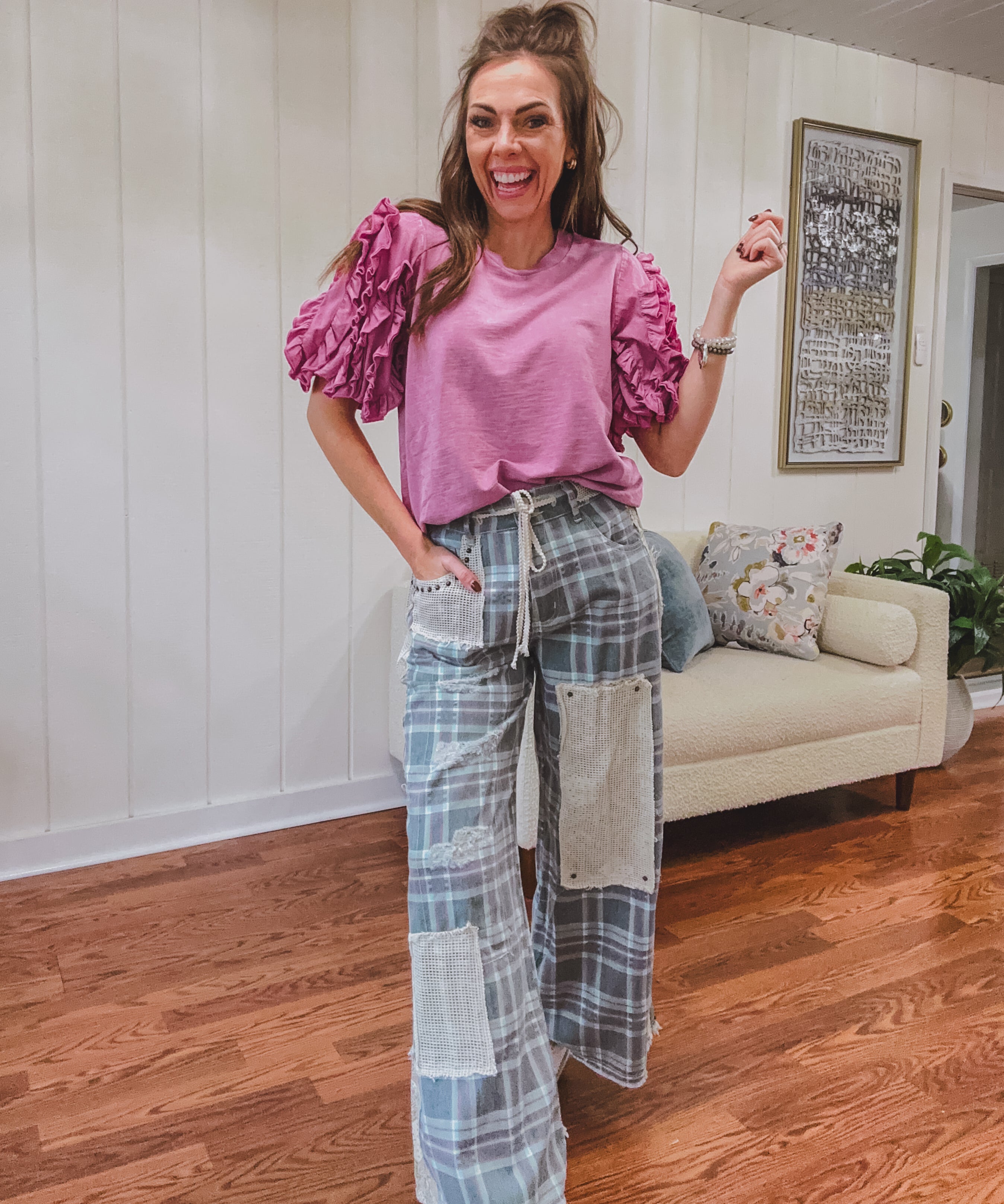 Teal Plaid + Lace Patchwork Pant