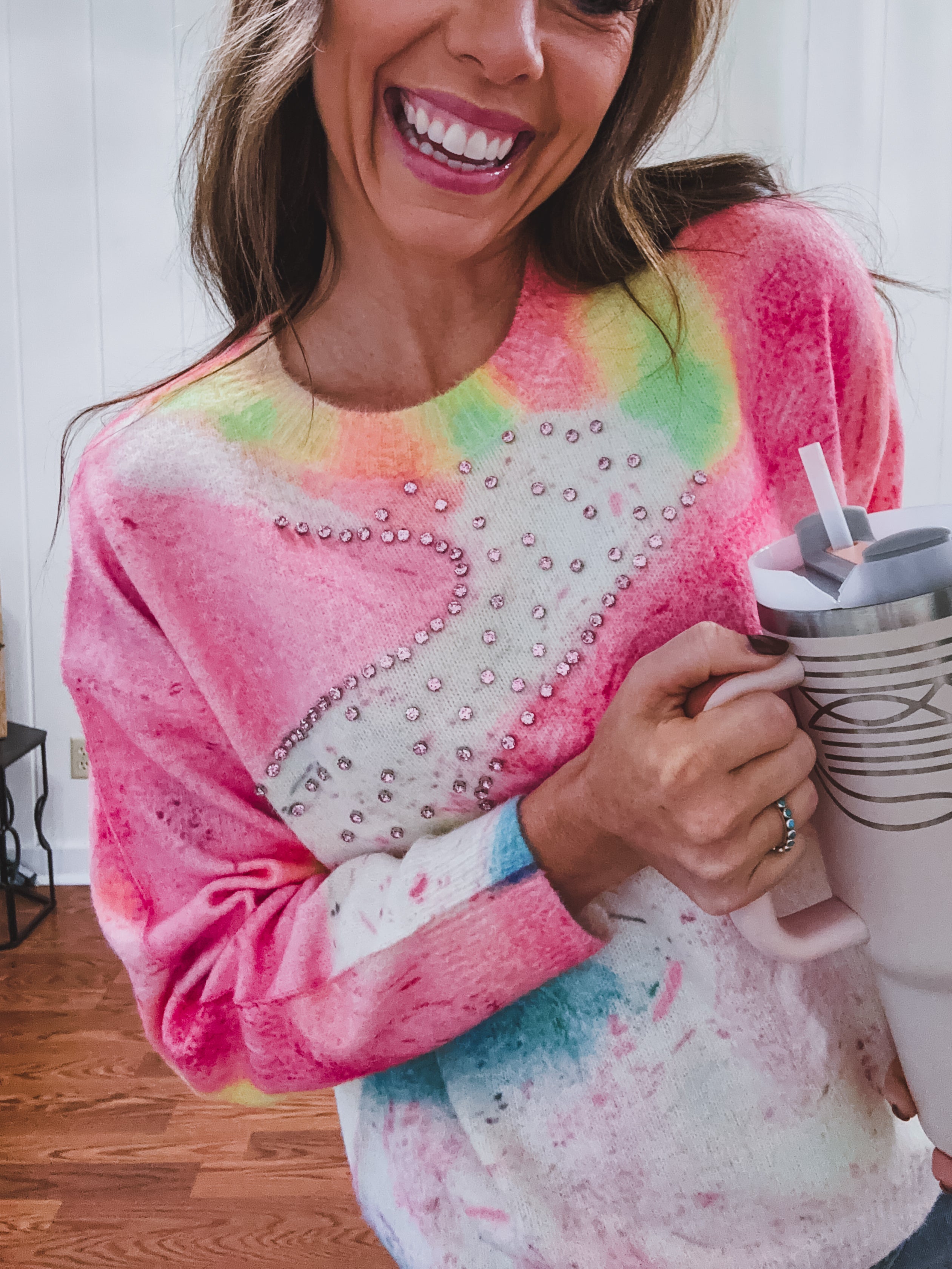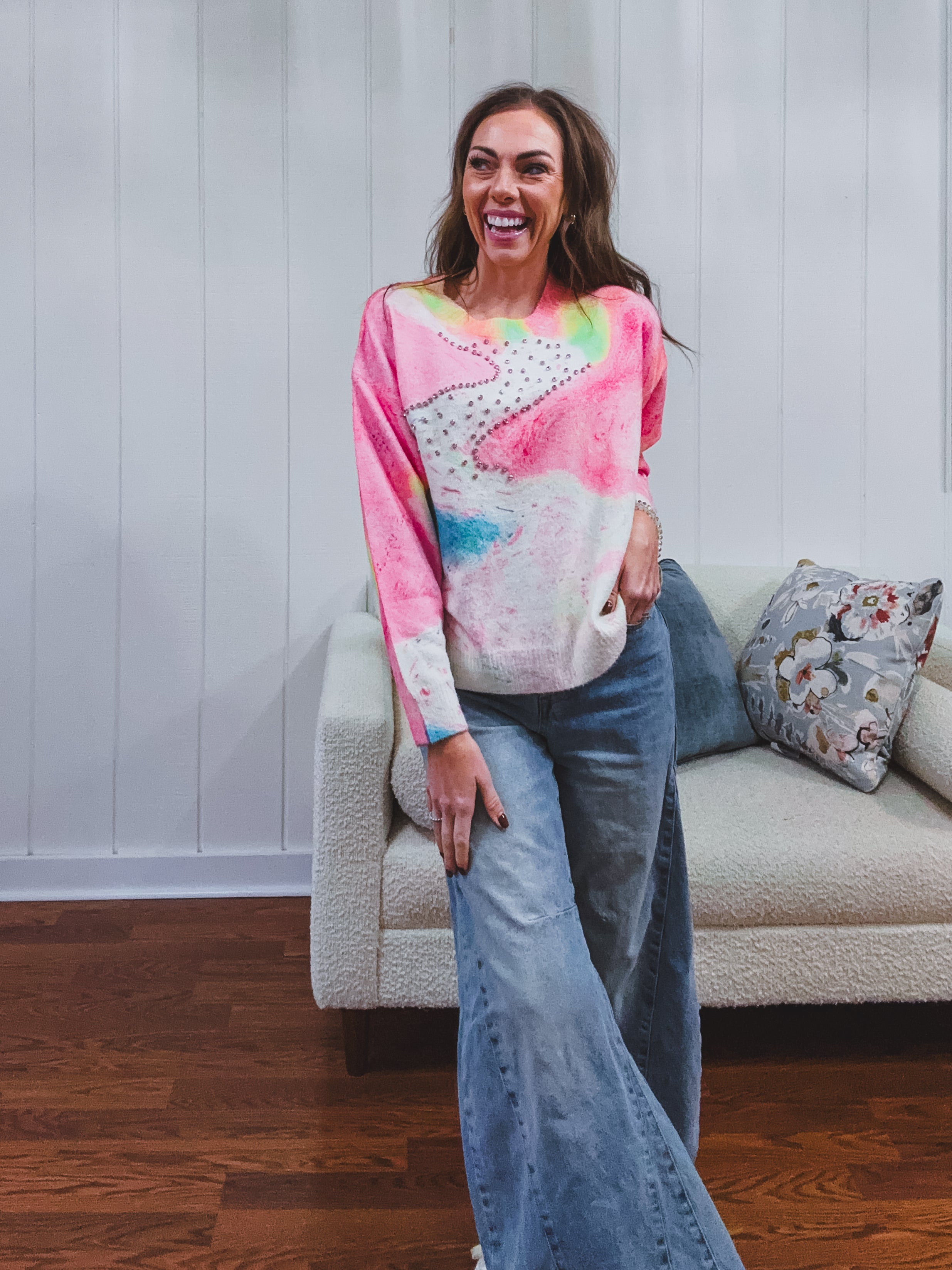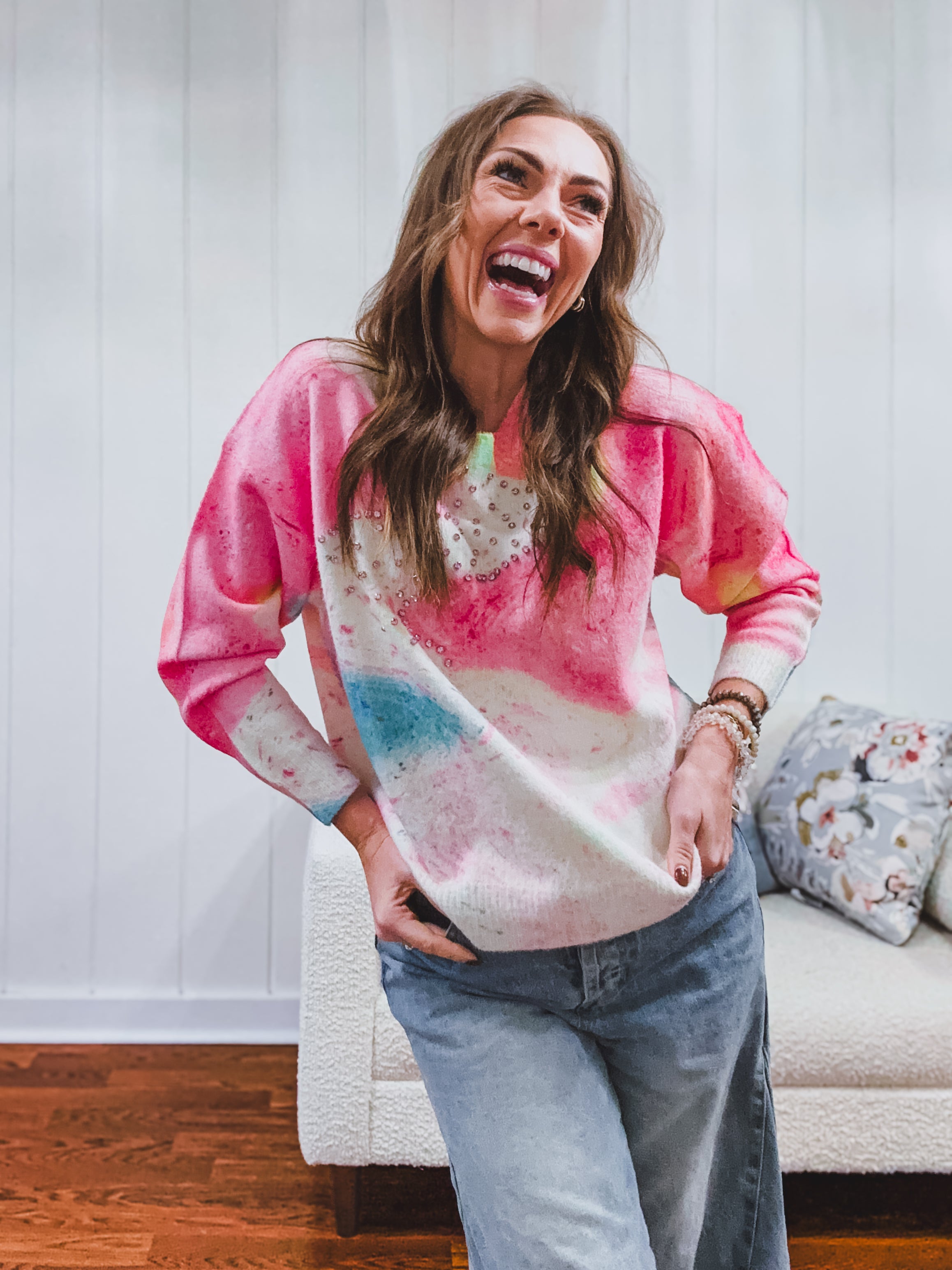 Pink Pastel Go With the Flow Rhinestone Sweater