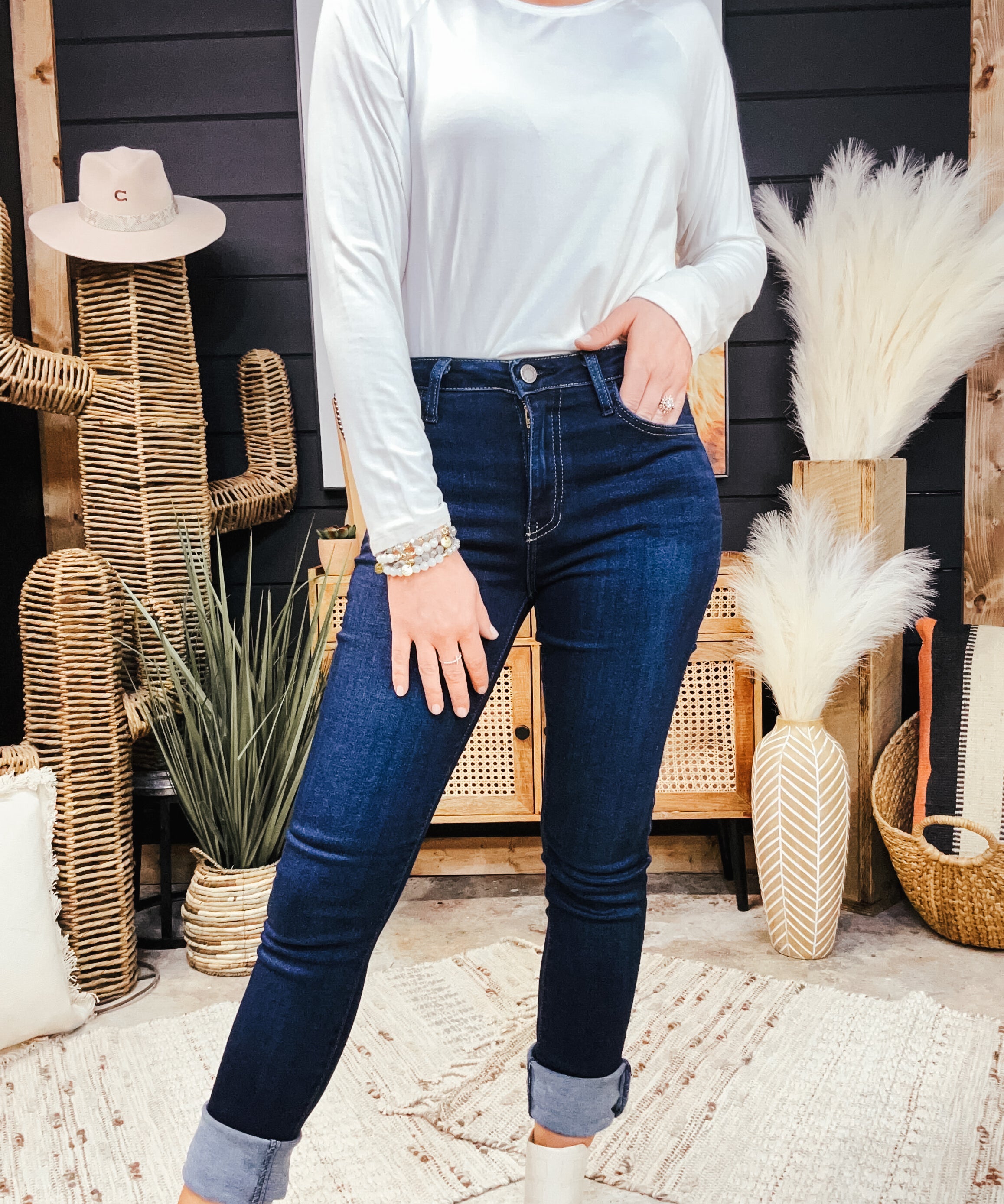 Tummy Control Crop Wide Cuff Jean | High Rise