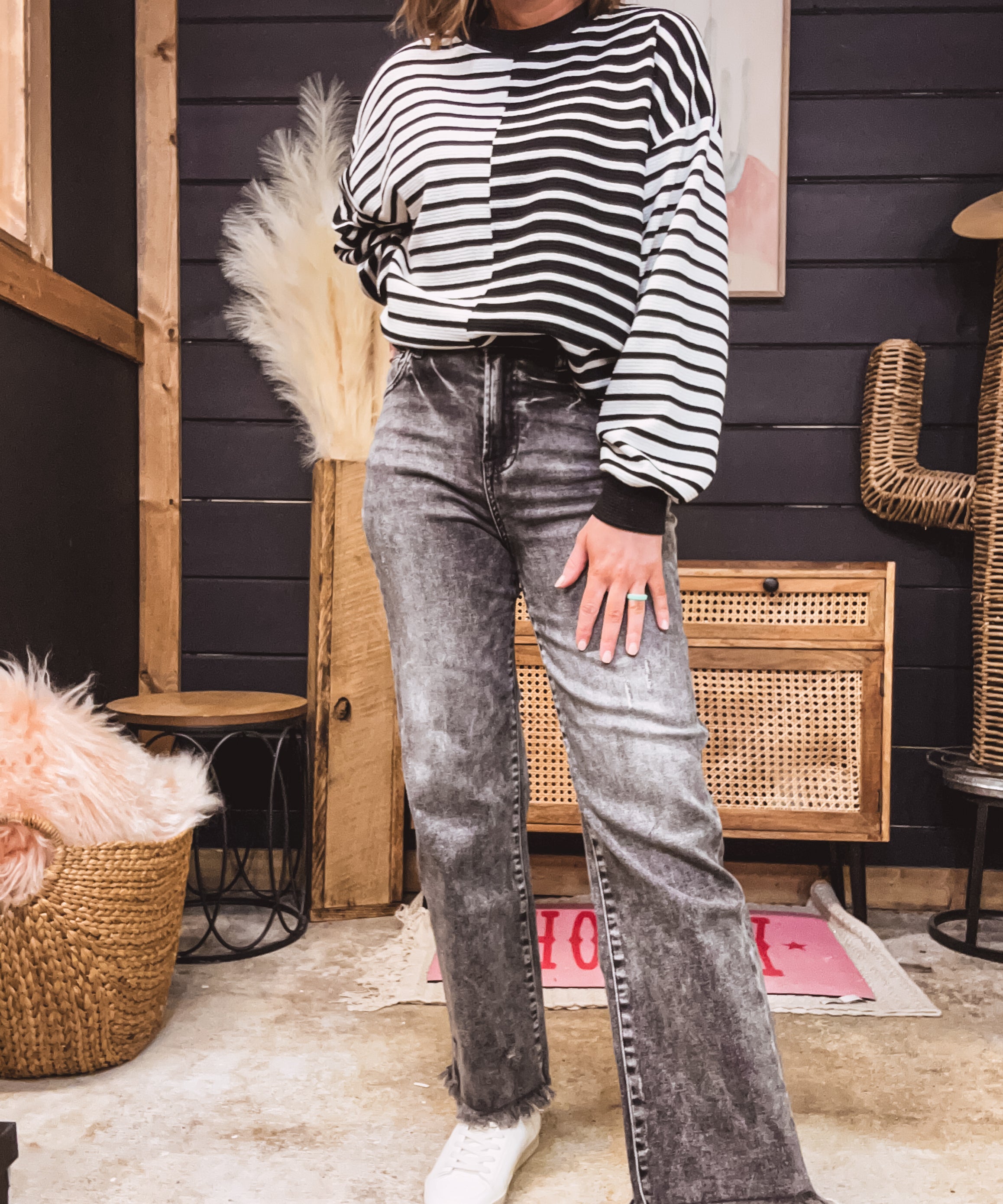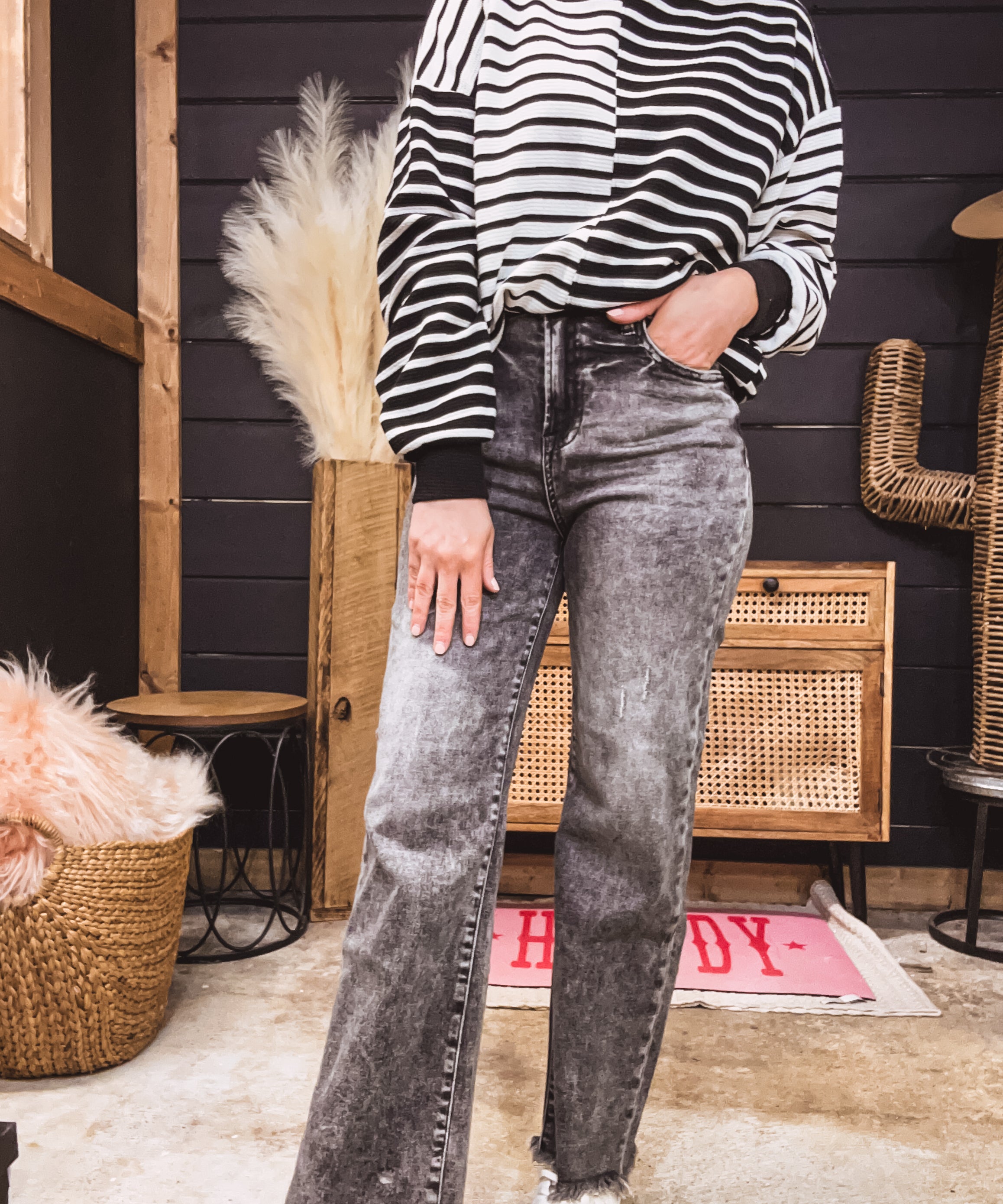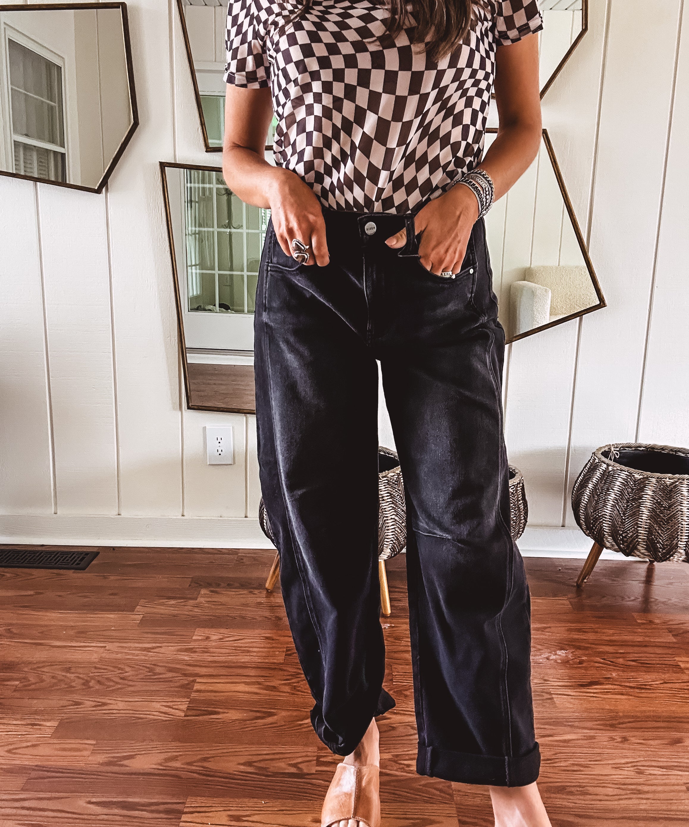 Black Boyfriend Cuff Barrel Denim | High Rise