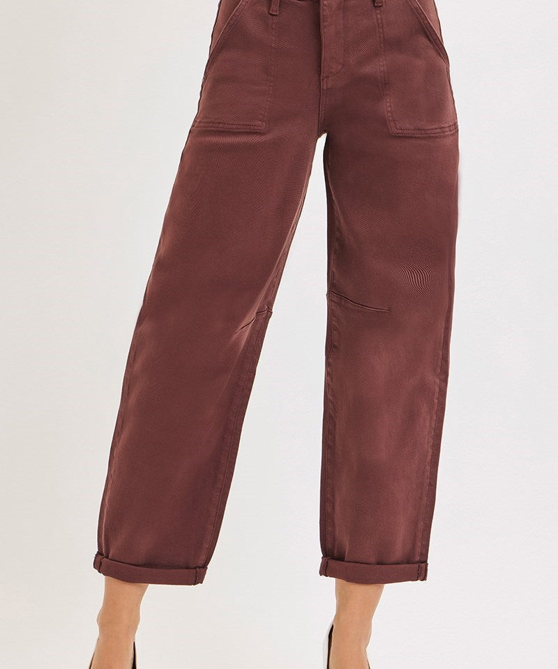 Choco Brown Ankle Cuffed Barrel | High Rise