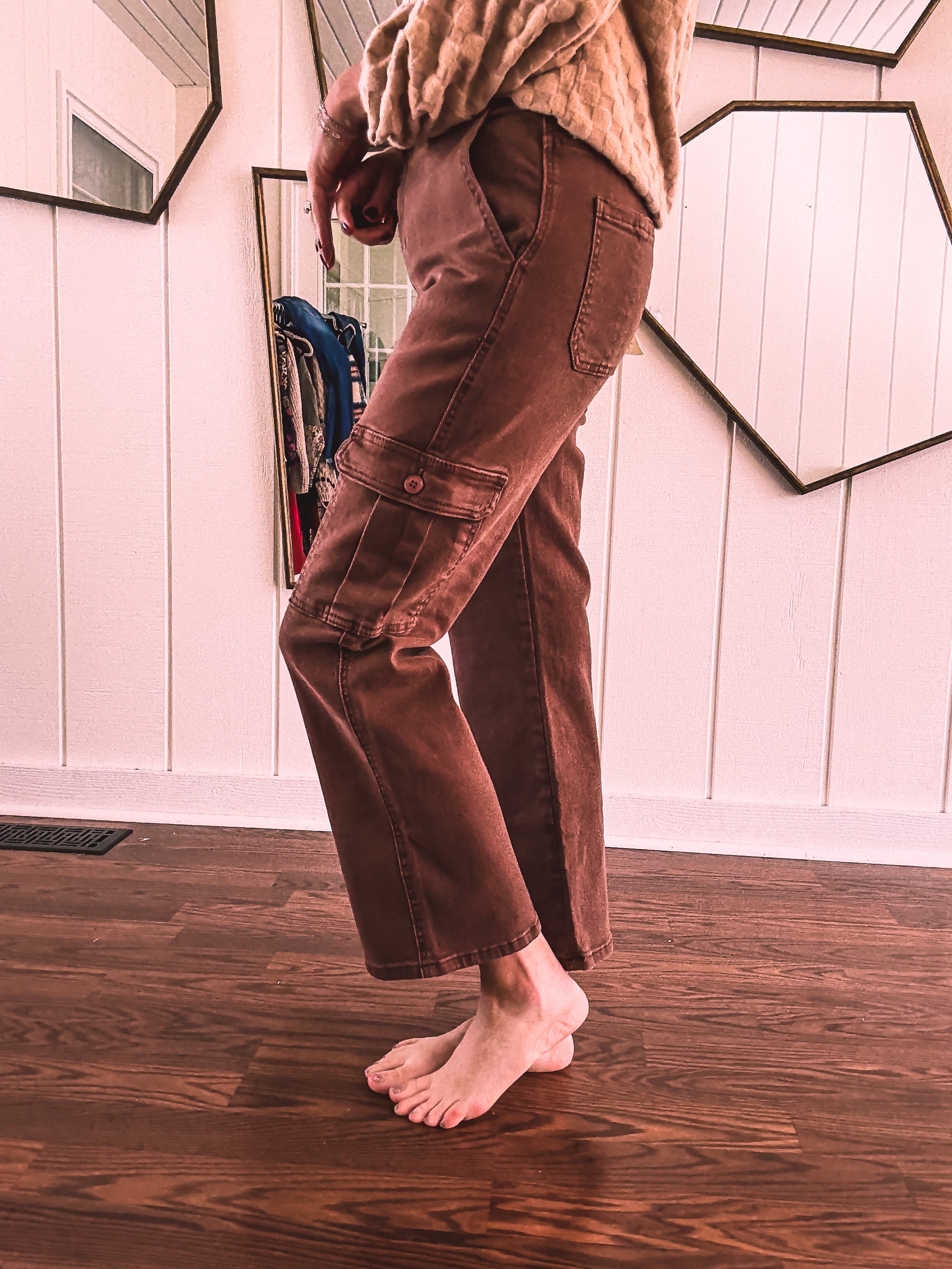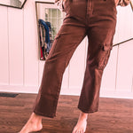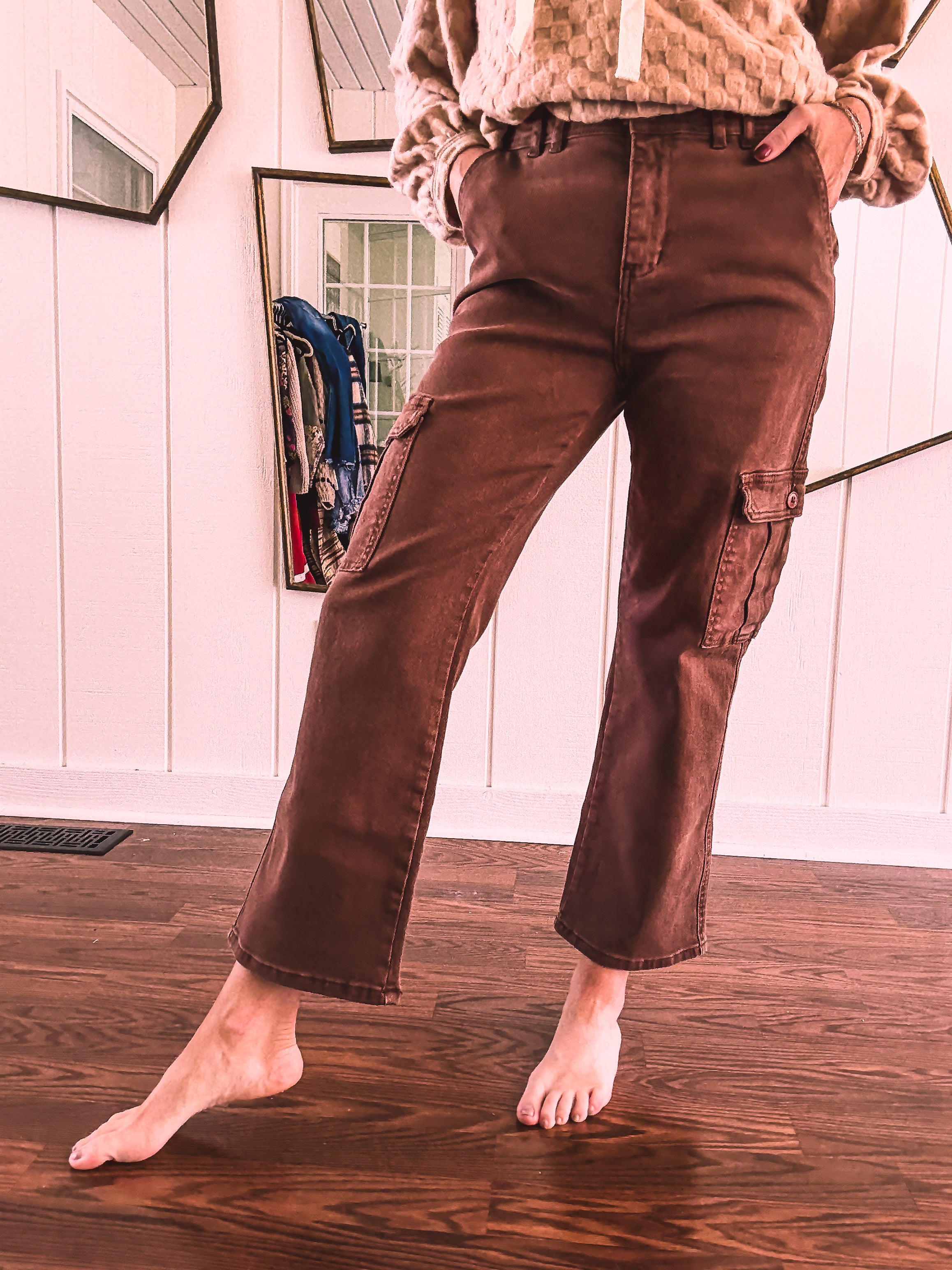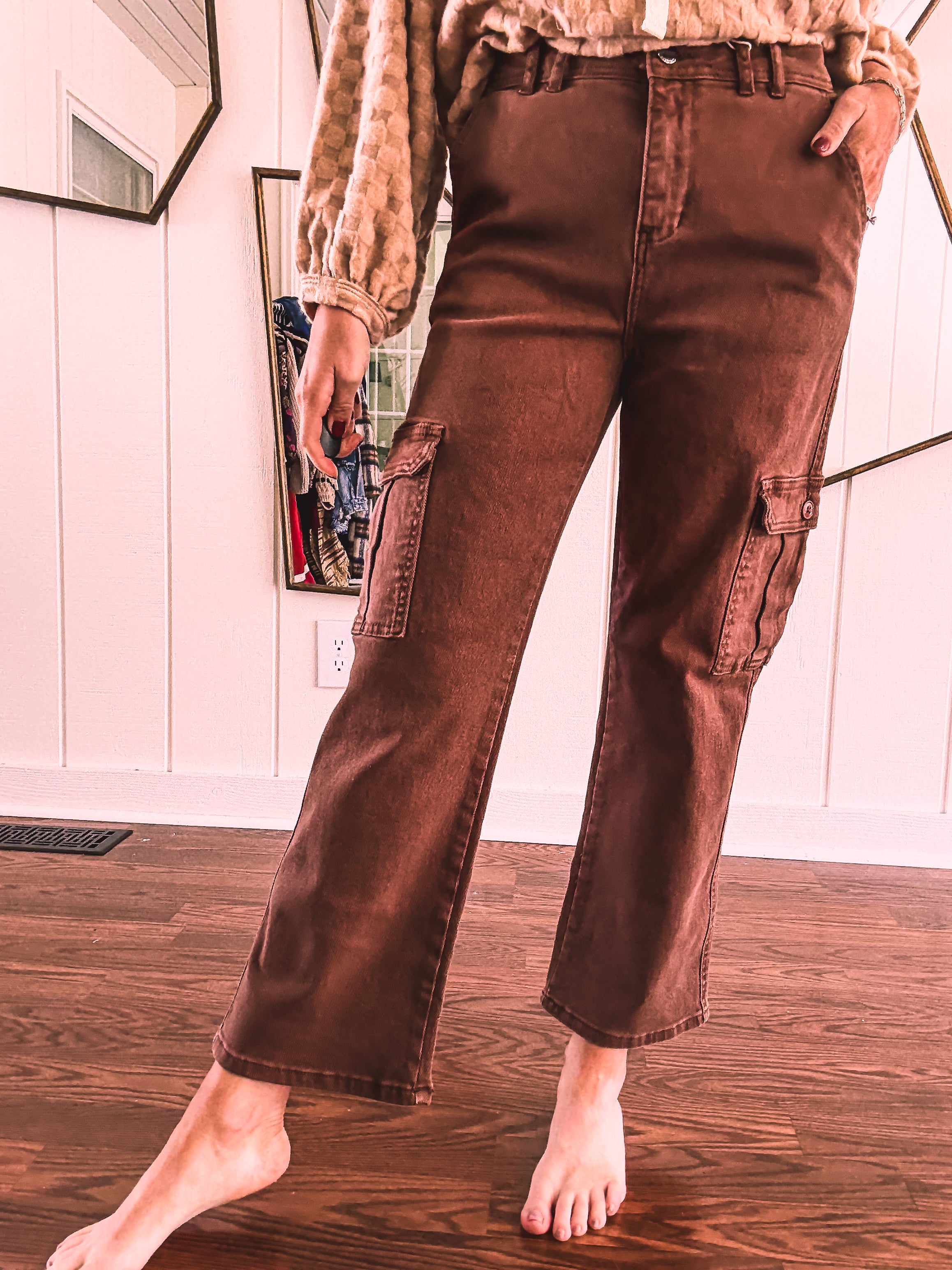 Rock a bold espresso hue with these Risen cargo jeans that nail the cropped, straight-leg silhouette. Classic cargo pockets deliver that signature utilitarian vibe, while the minimal stretch keeps things structured and statement-making. Perfect for layering through chilly seasons with serious style credentials.
