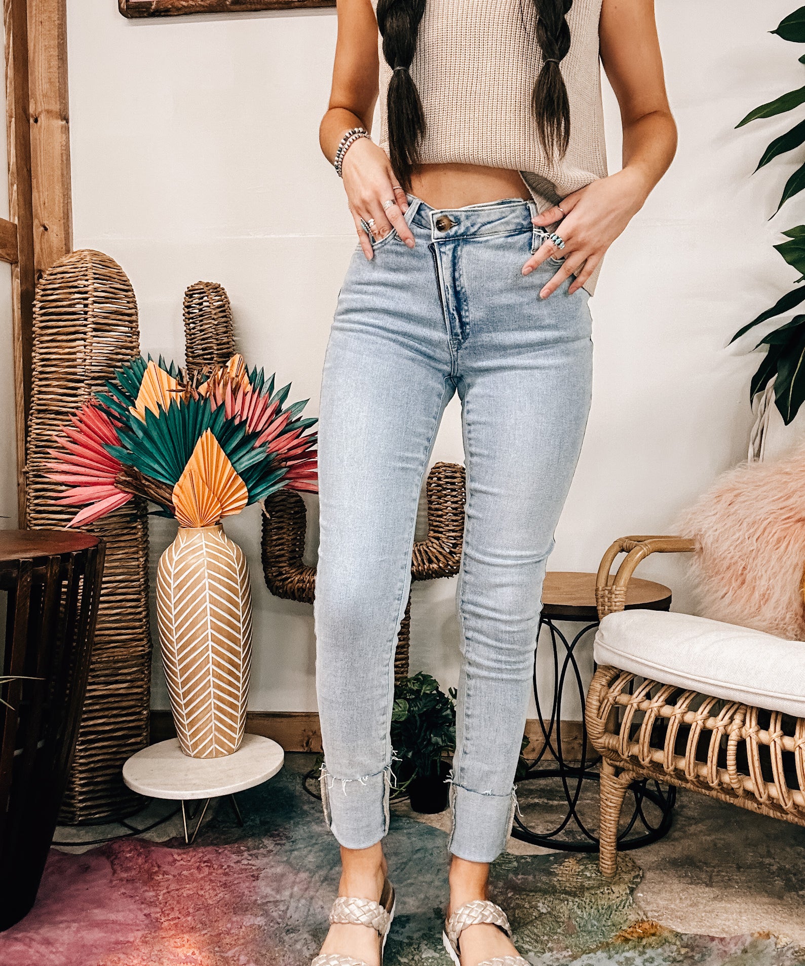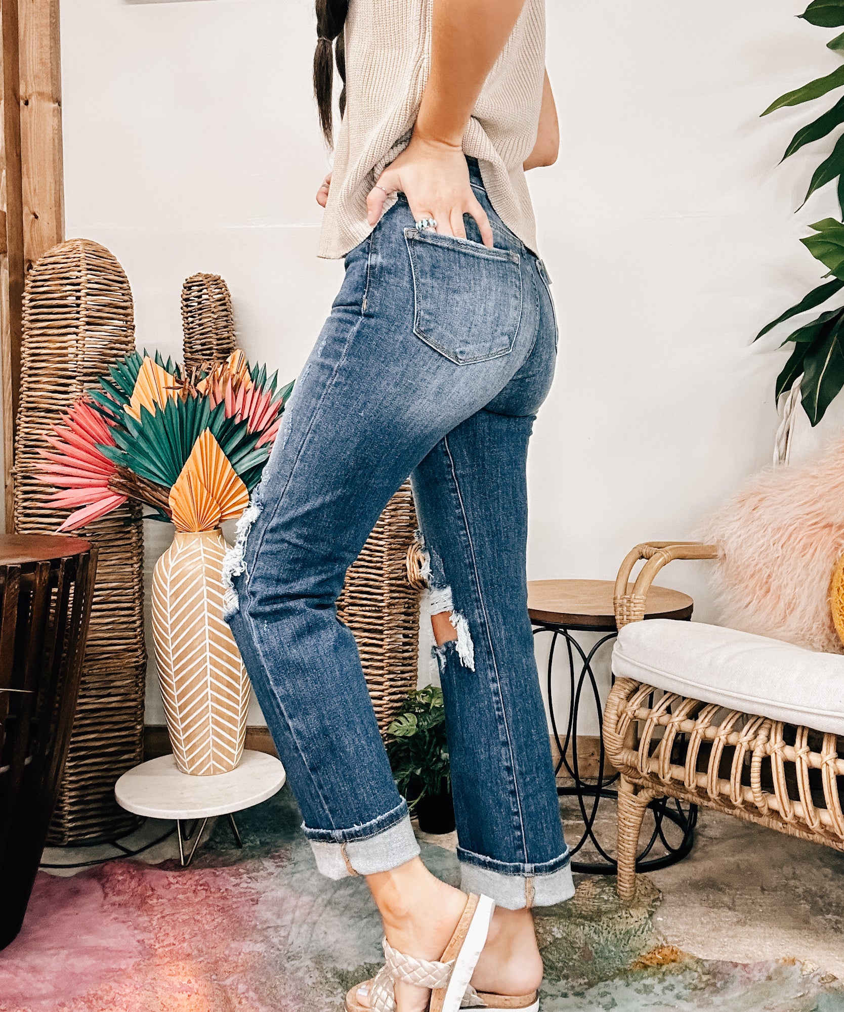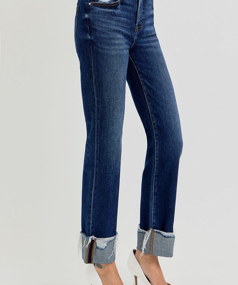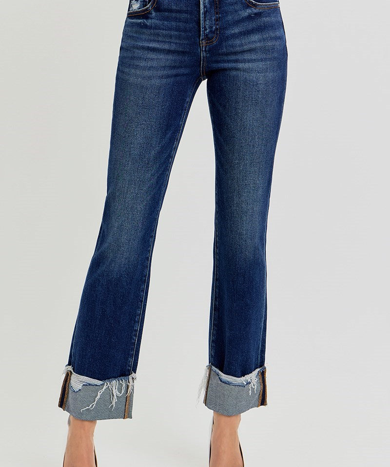 Tummy Control Crop Wide Cuff Jean | High Rise
