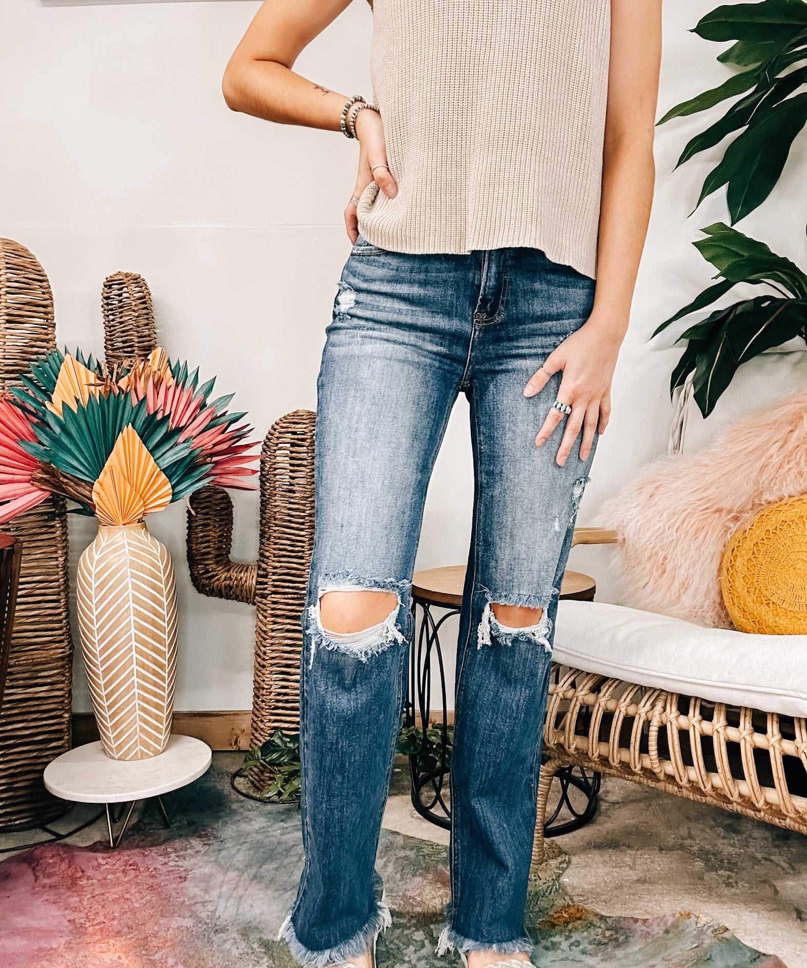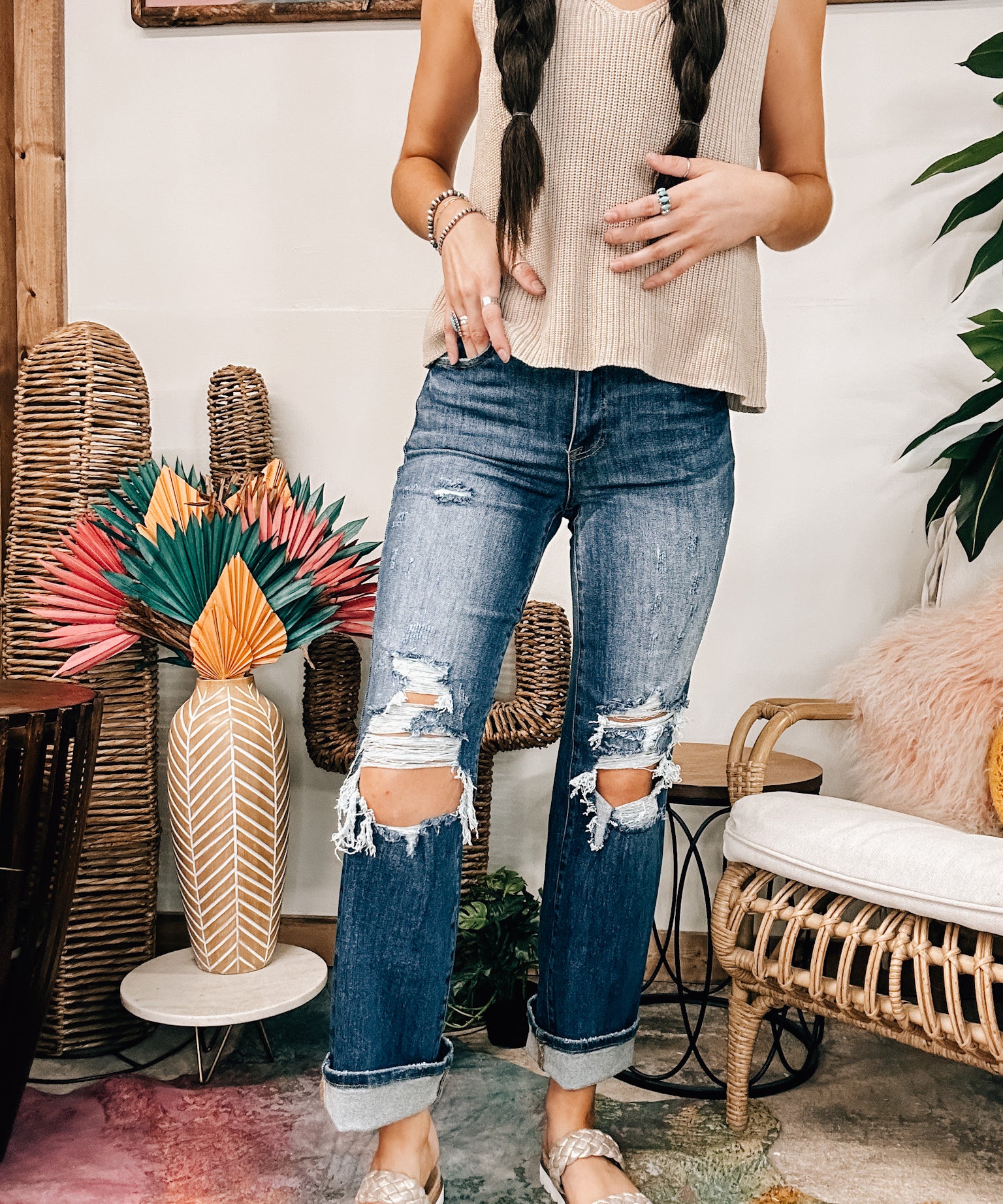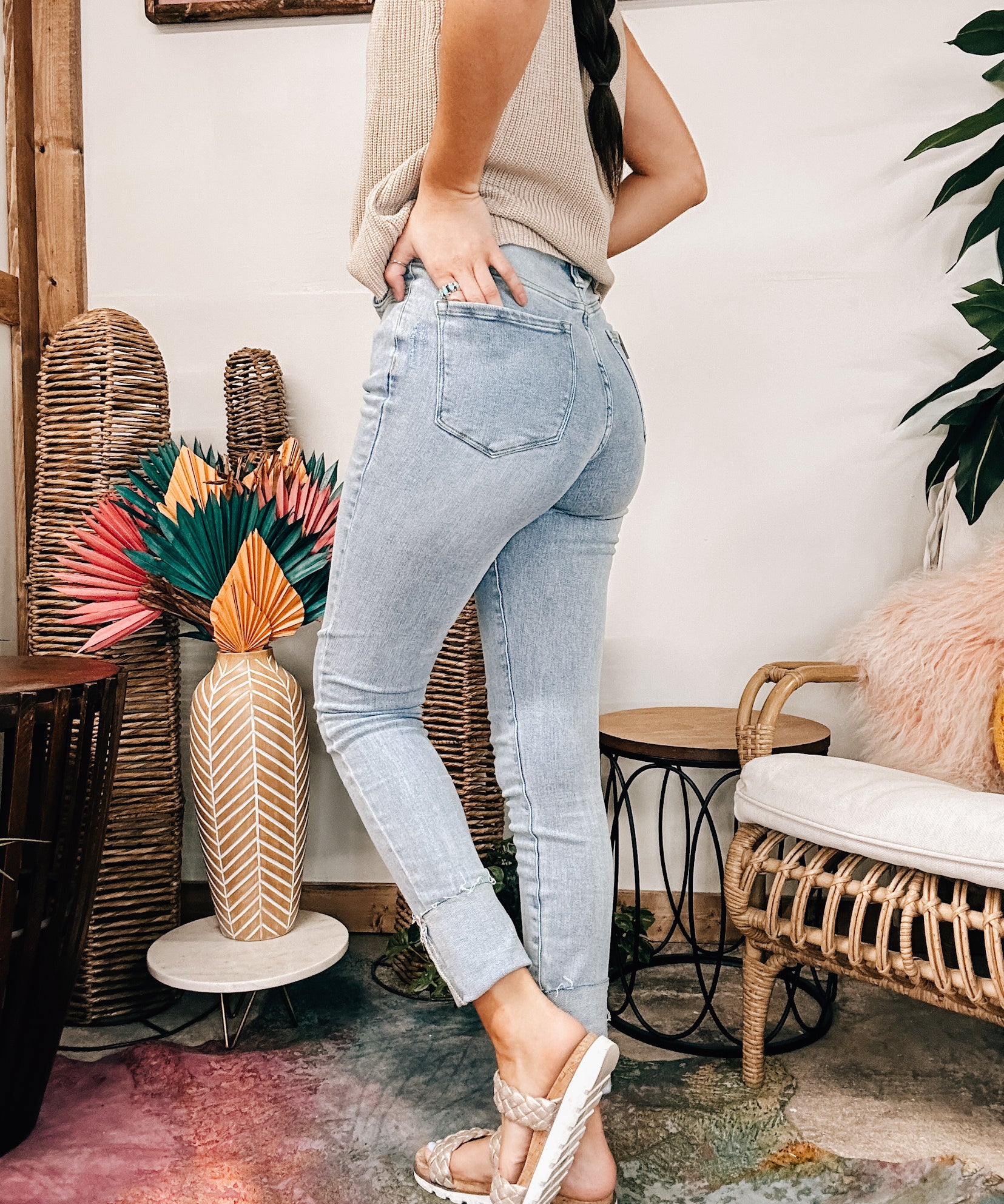 Tummy Control Crop Wide Cuff Jean | High Rise