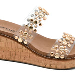 Step up your shoe game with Corky's Clear Bad Habit Wedges! Featuring sparkling rose gold studs and see-through straps, these chic sandals add a fun twist to any outfit. The 3-inch wedge gives you a stylish boost, and the memory foam footbed keeps your feet happy all day long. Perfect for those who love comfort with a dash of flair!