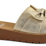 Corky's are a boutique fave and a bestseller and they've done it again with the Rock The Bowt | Gold! This versatile sandal can be worn with literally any 'fit whether you're going casual with shorts or jeans or dressing it up with some linen pants or a dress. Featuring a single wide gold metallic strap with a bow for a touch of sophistication and femininity. The slip-on design with a cushioned footbed ensures all-day comfort and easy wearability.