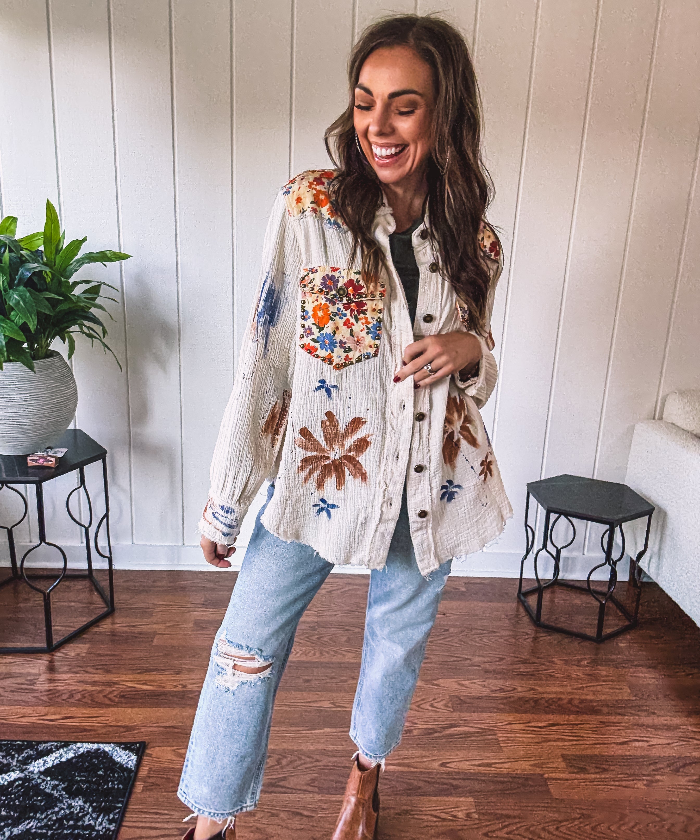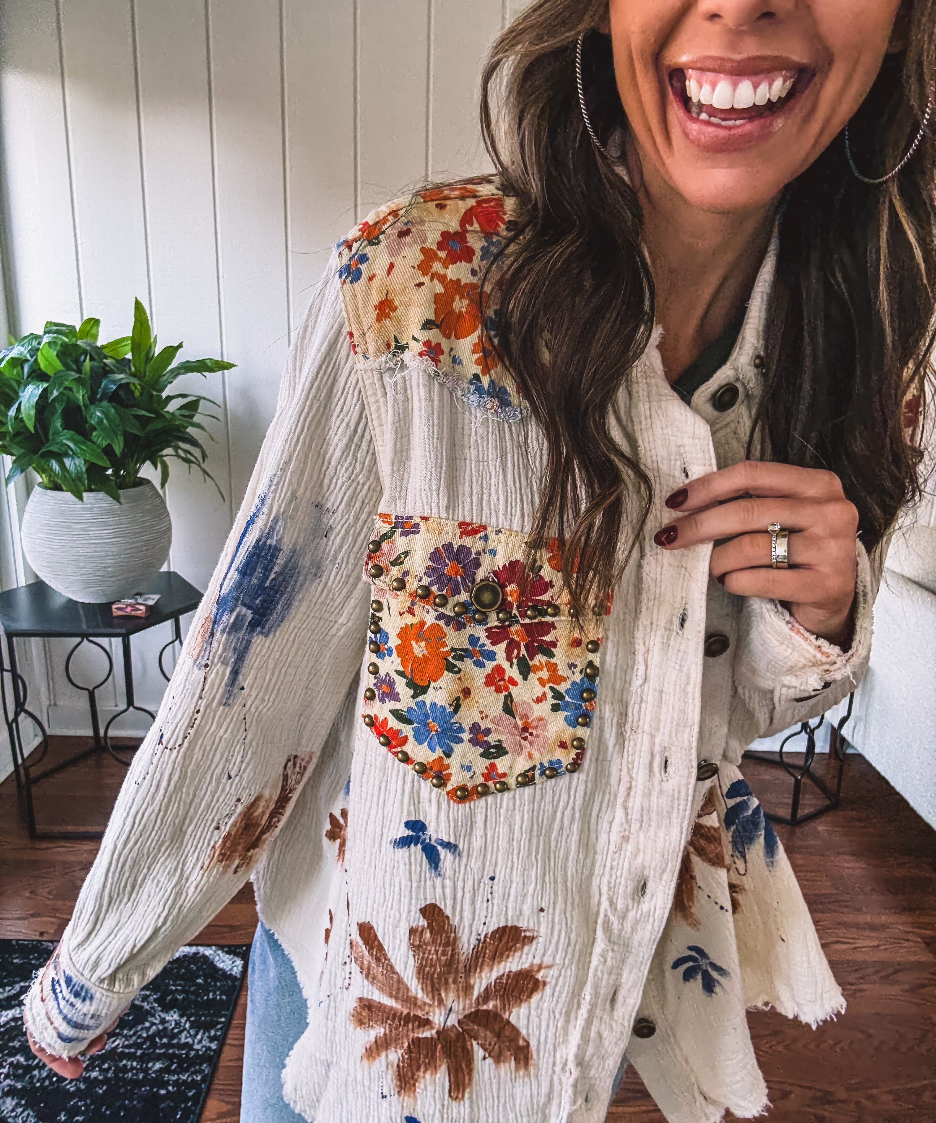 Rusty Mocha Moody Jacquard Floral Denim Jacket