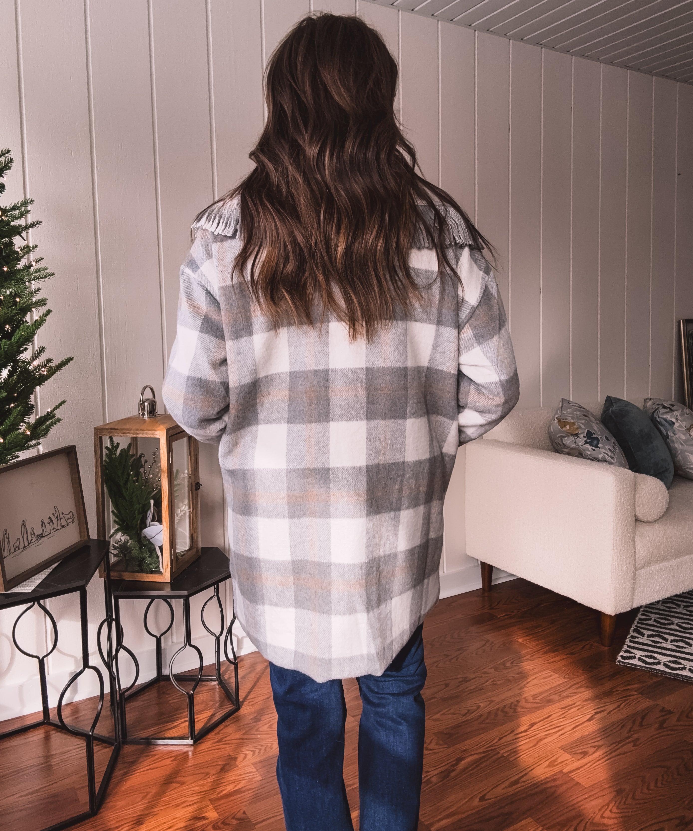 Grey + Cream Hartford Fringe Coat