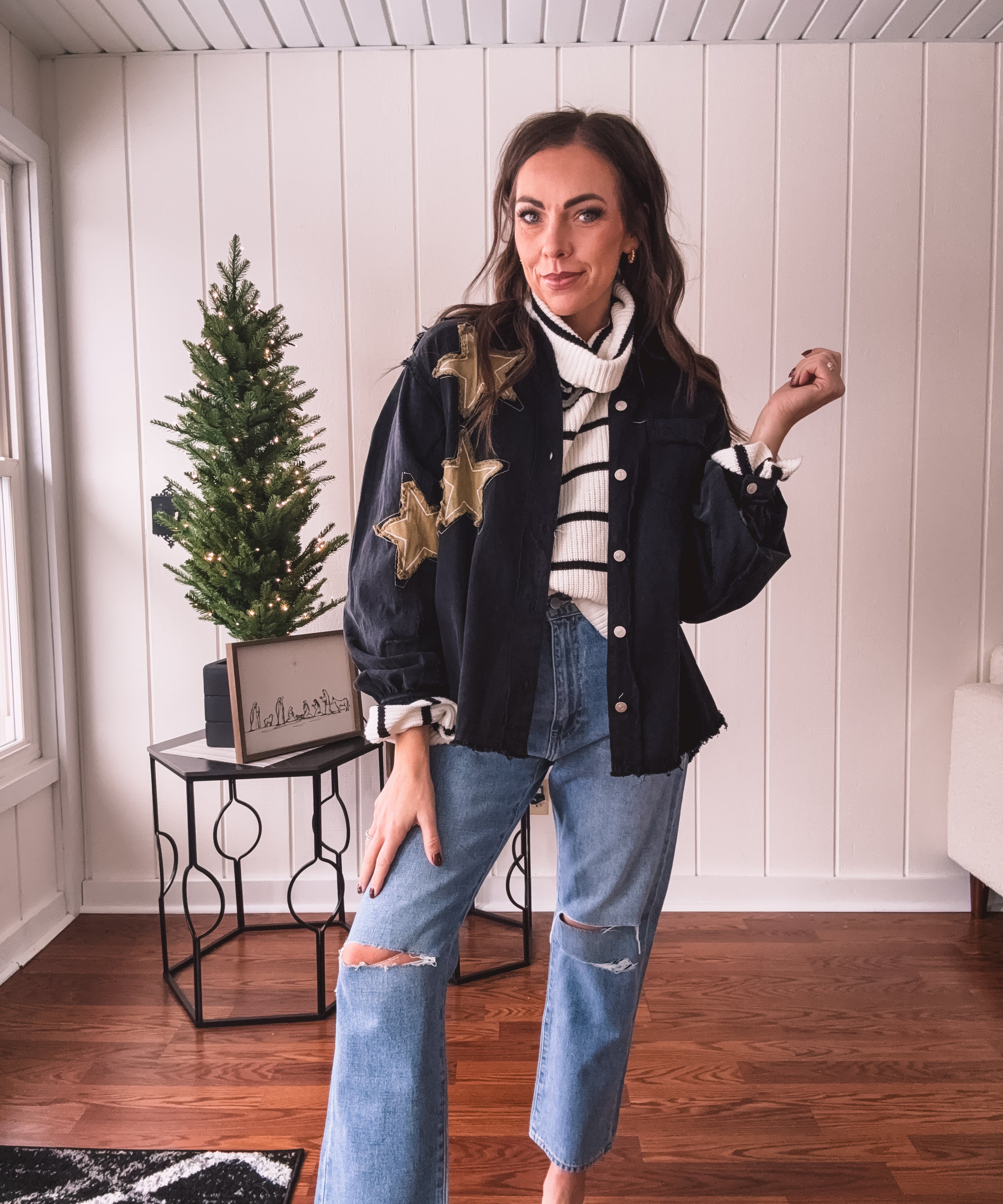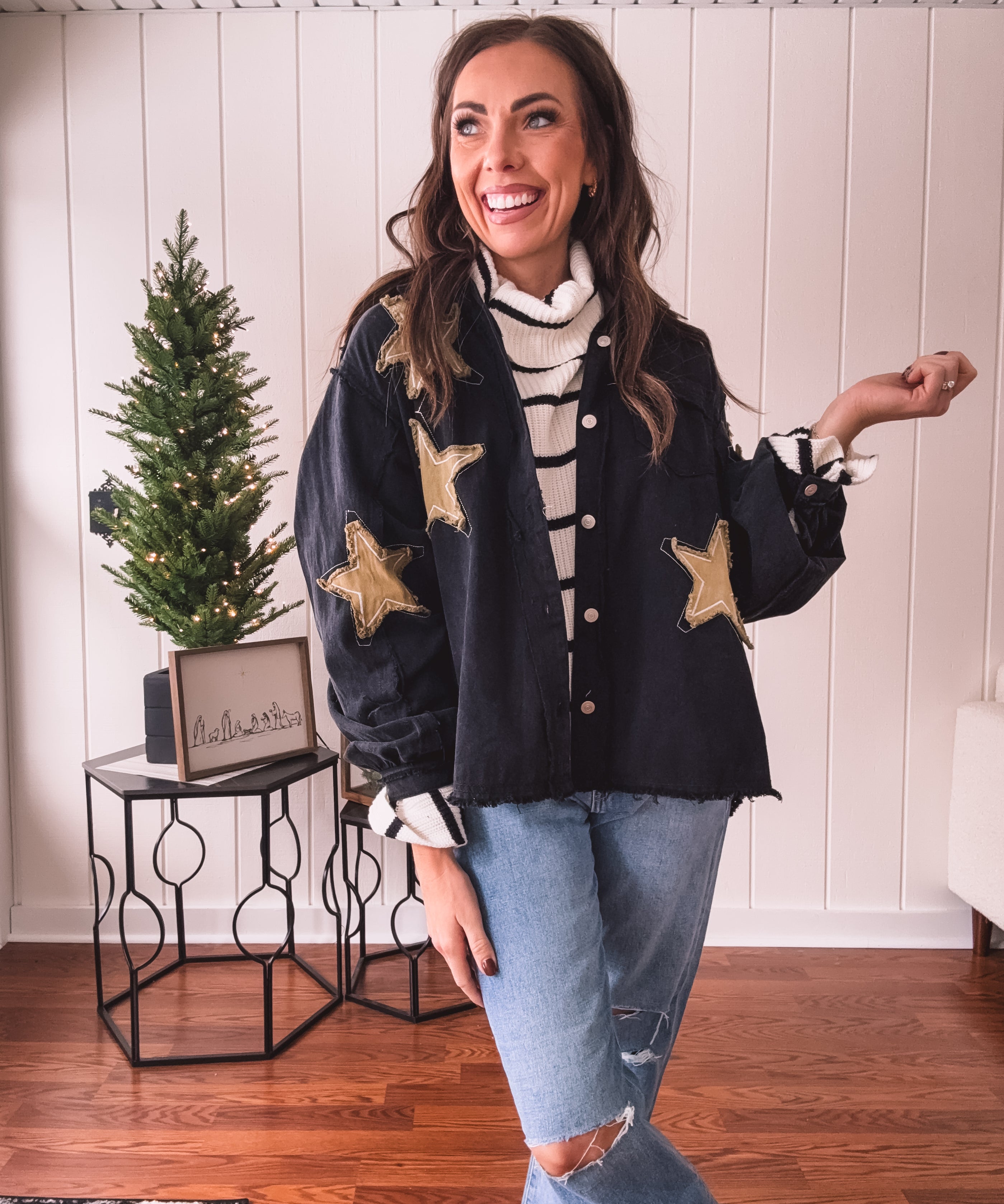 Black + Gold Star Patchwork Jacket