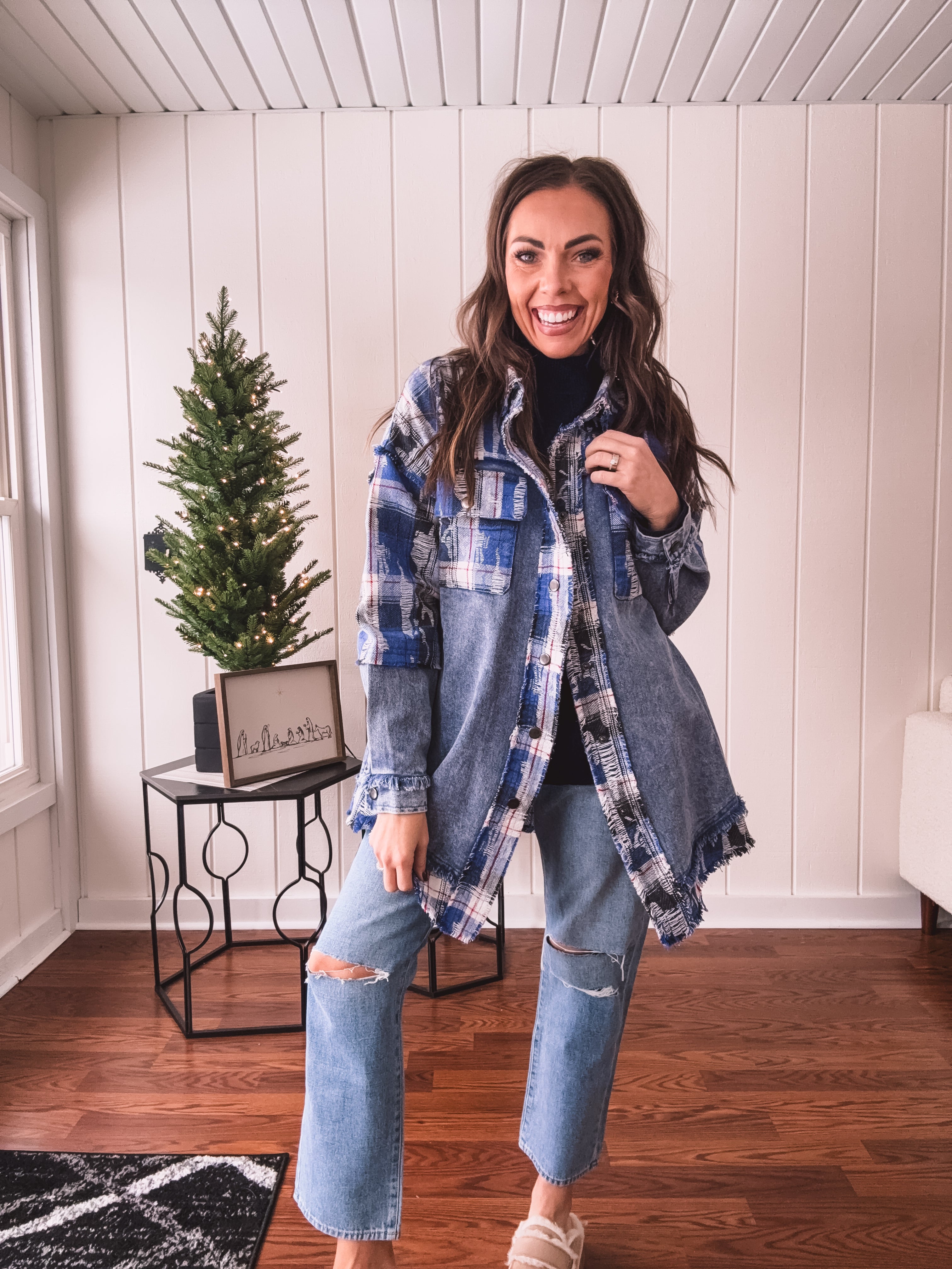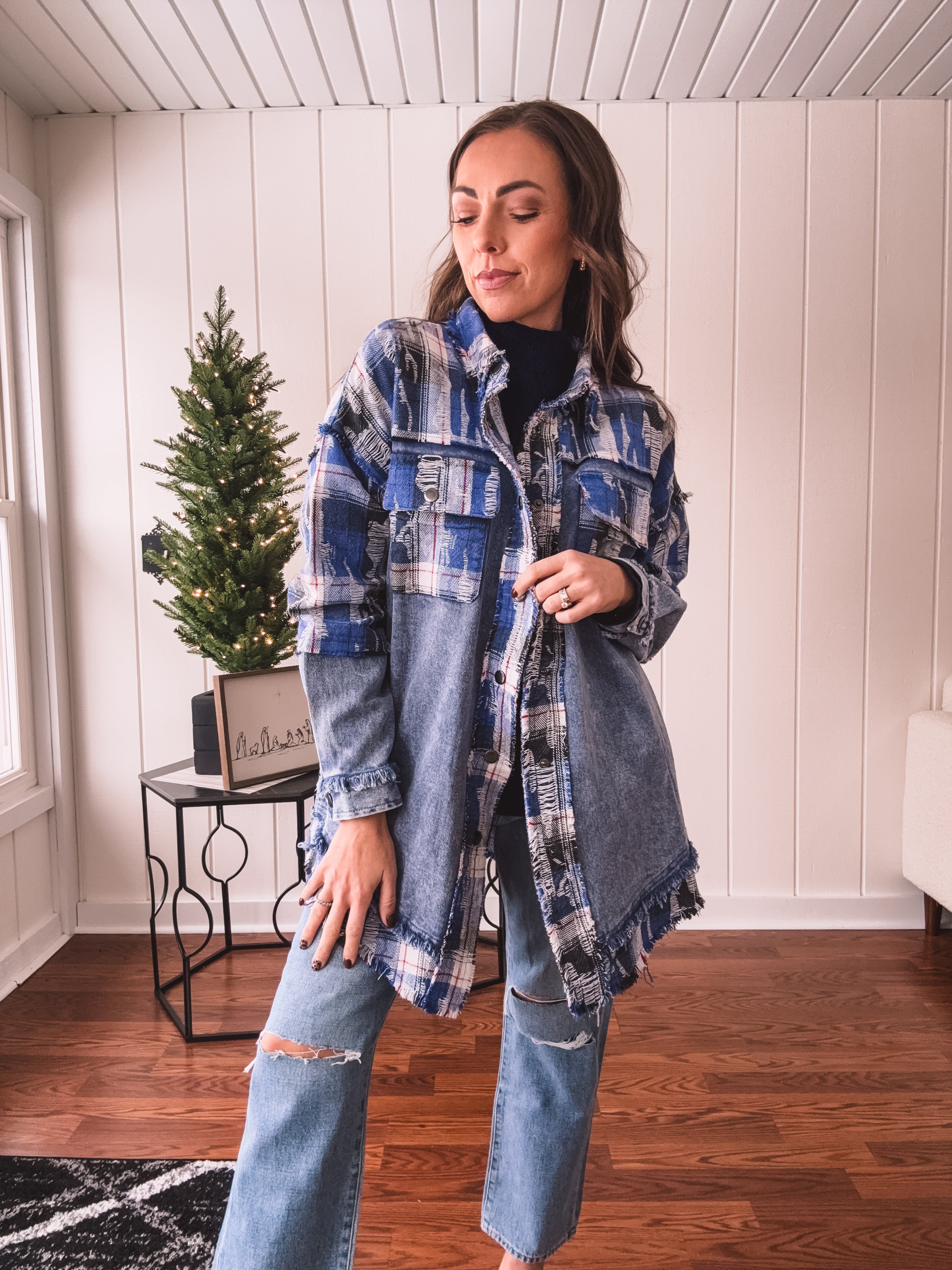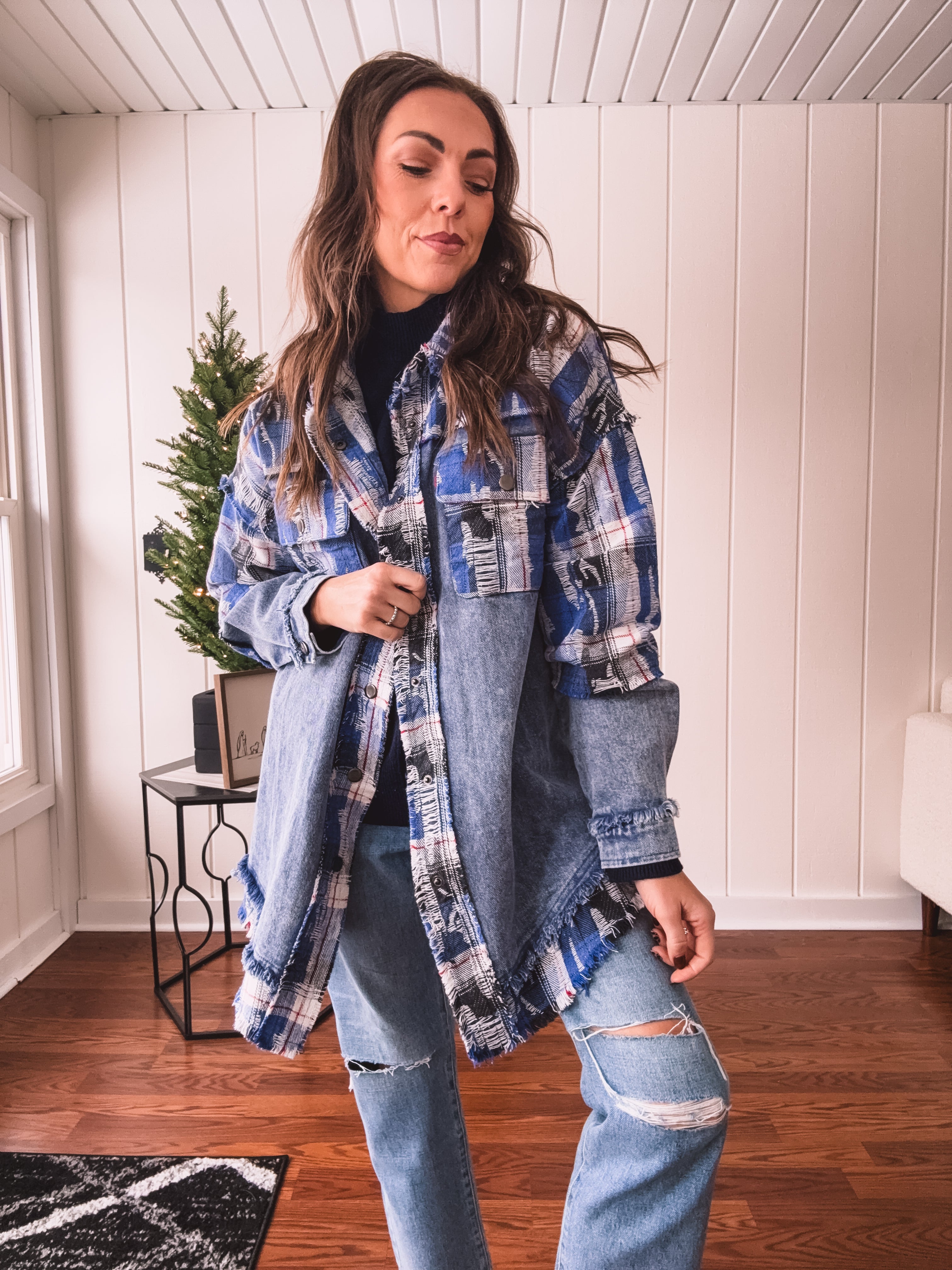 Blue Bliss Denim + Flannel Mix Shacket