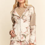 Cream Boho Elegance Floral Zip Jacket