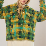 Green + Mustard Plaid Fur Button Jacket