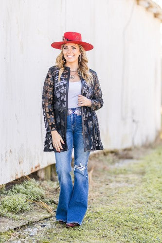 Saddle up in style with this show-stopping leather jacket that screams rodeo royalty. Crafted from genuine leather with an edgy mesh overlay adorned with studded black stars, it's the ultimate statement piece for anyone ready to turn heads. The sleek zipper front and leather collar deliver that perfect mix of tough and refined. Throw it over jeans, dresses, or anything in between—this jacket transforms any outfit into a winning look.