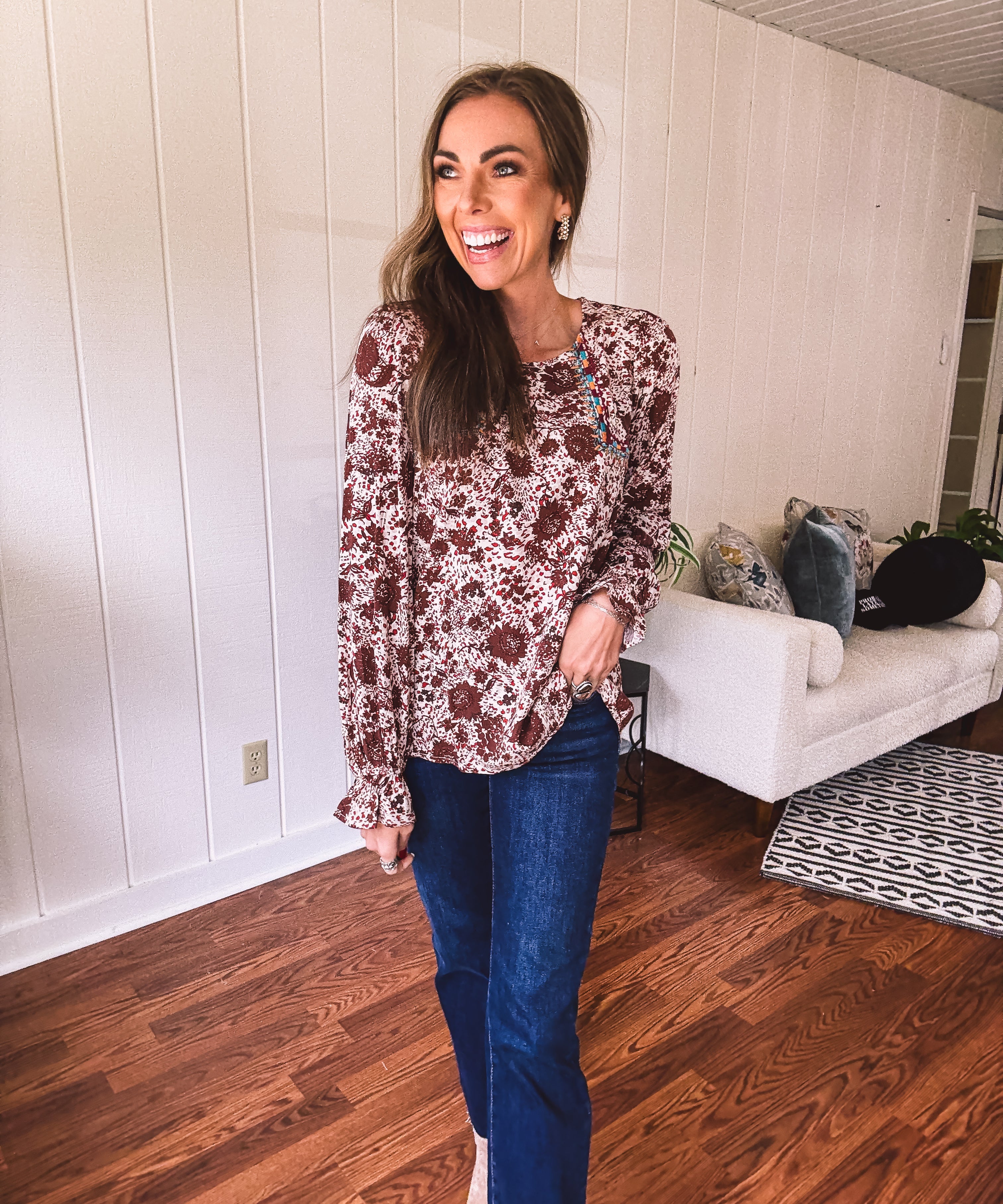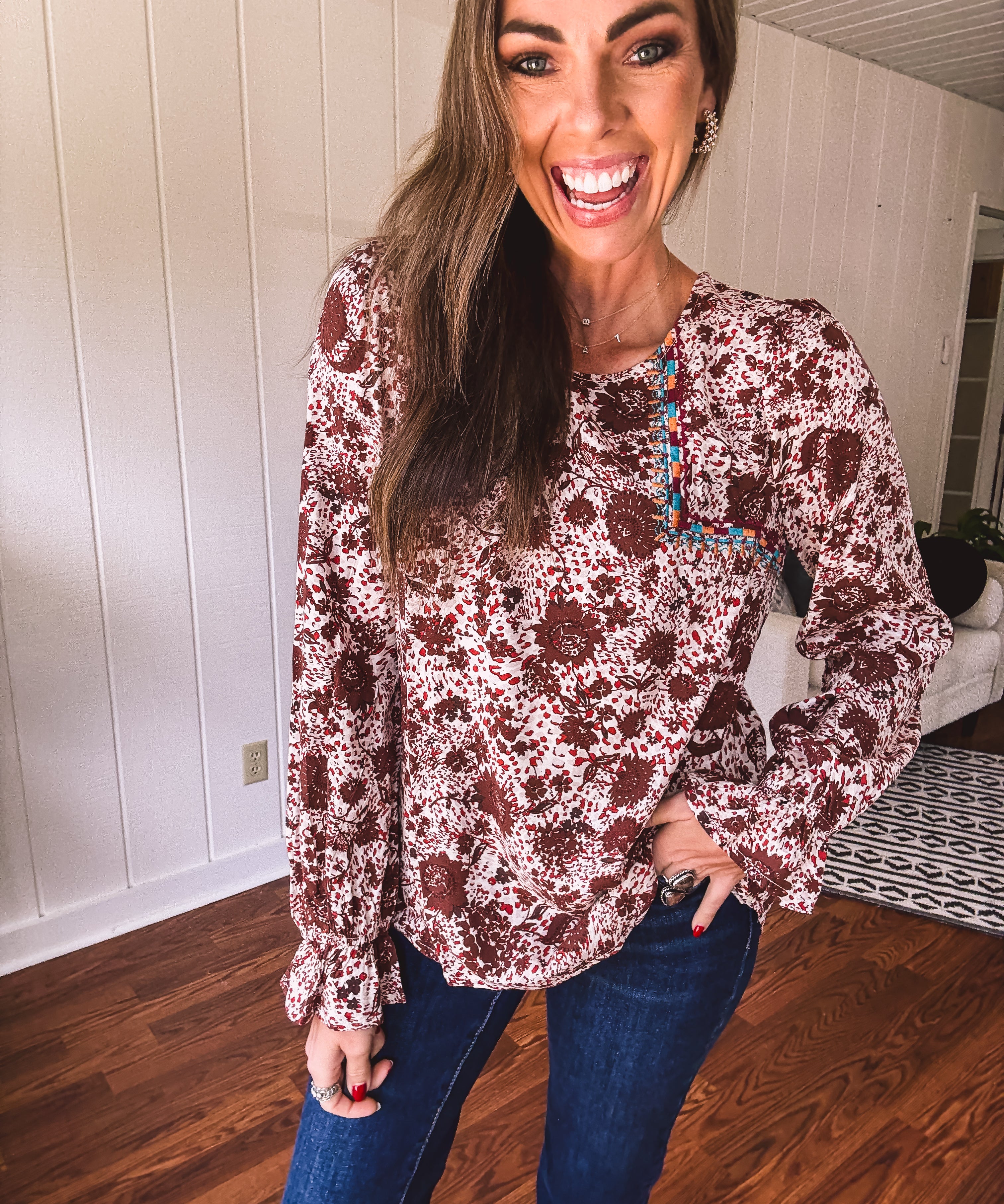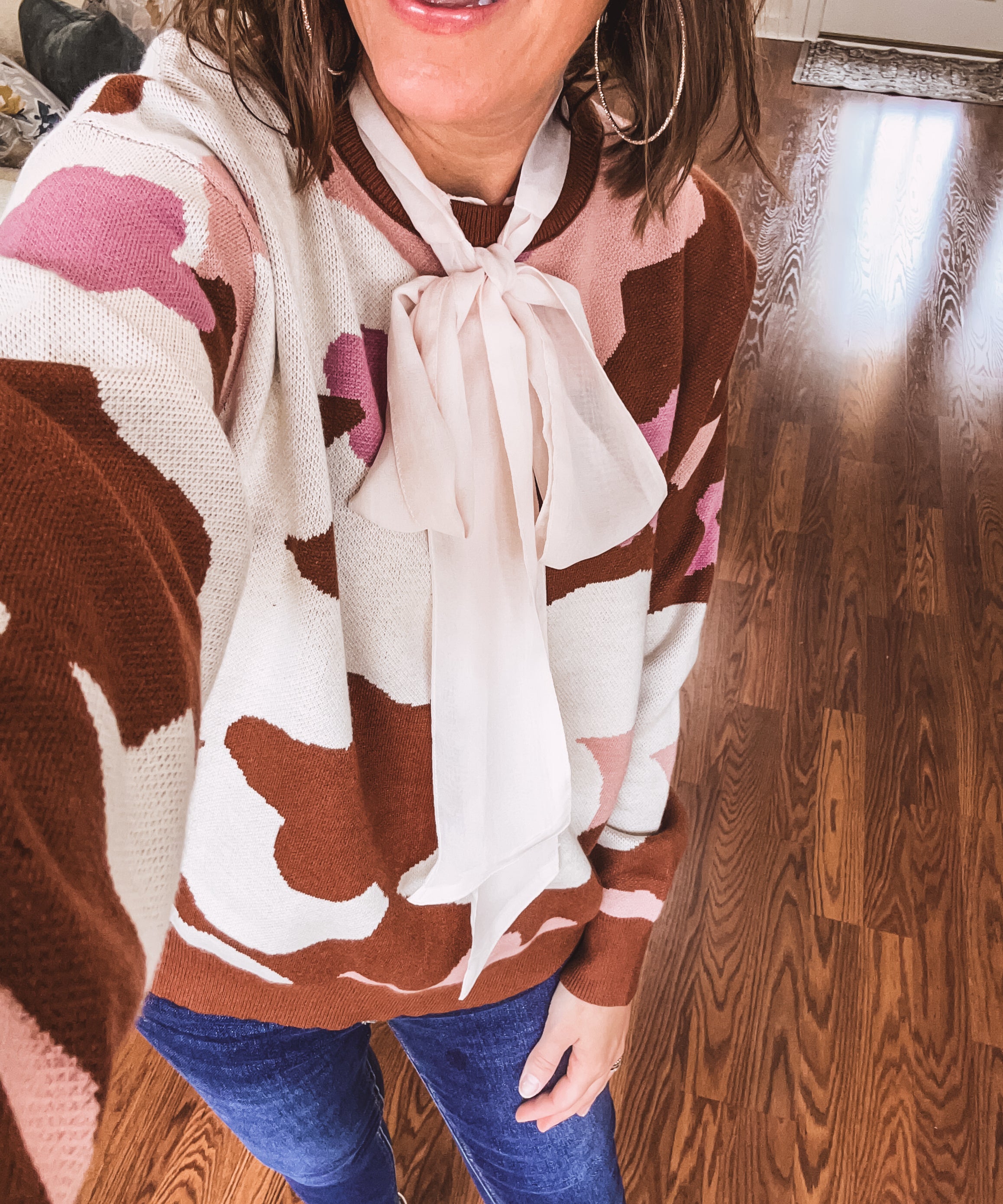 Burnt Topaz Chenille Mock Neck Balloon Sleeve Sweater