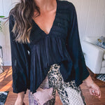 Black Eyelet V Neck Boho Blouse