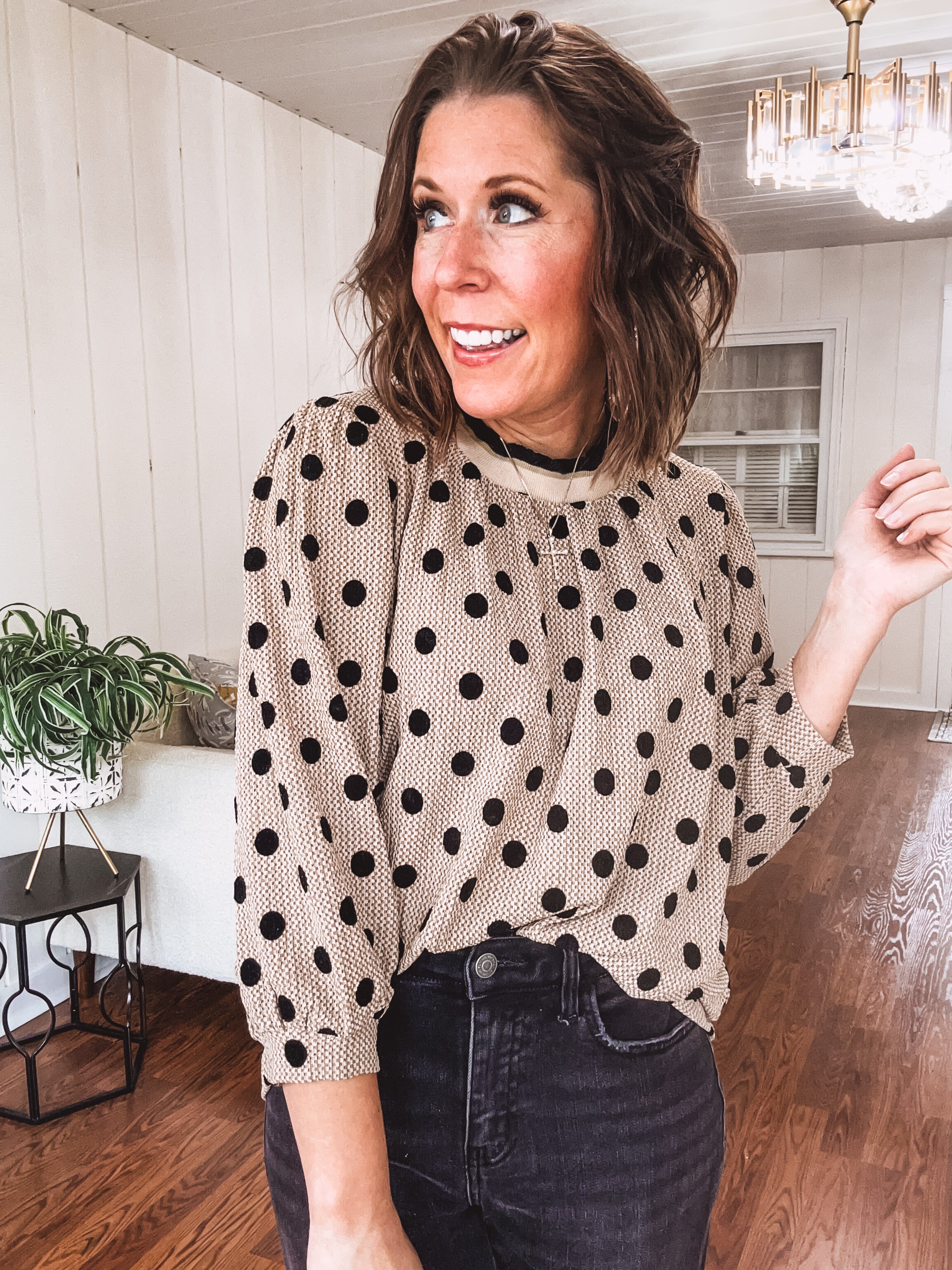 Latte Polka Dot Puff Sleeve Blouse