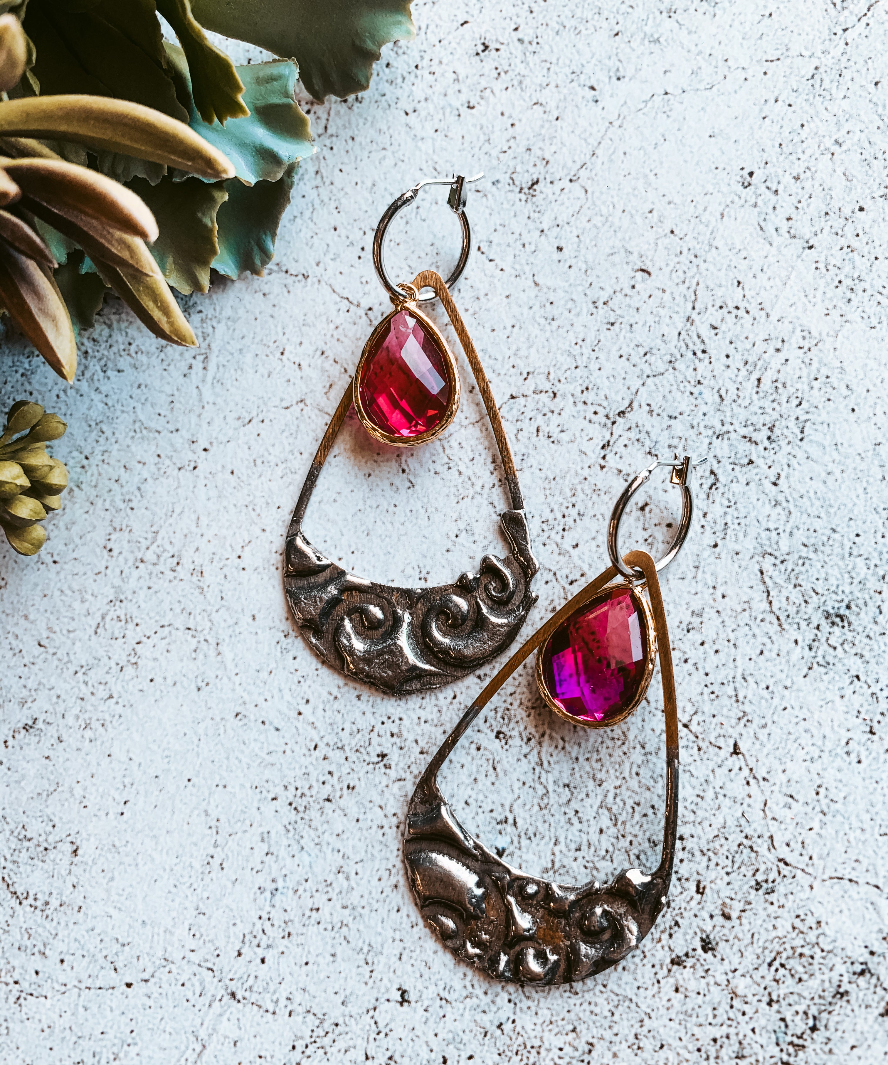 Cutout Teardrop with Fuchsia Stone