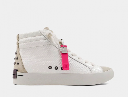 Meet REESE, your soon-to-be favorite high-top sneaker! Made with premium faux leather and suede, these kicks feature a trendy white snake-inspired texture, edgy distressed details, and eye-catching studs. The durable rubber soles keep you comfy and supported from morning to night. Dress them up with pants or a skirt for a stylish, contemporary vibe. With timeless style and top-notch design, they even come with a cool pendant tag flaunting the brand’s signature icon.