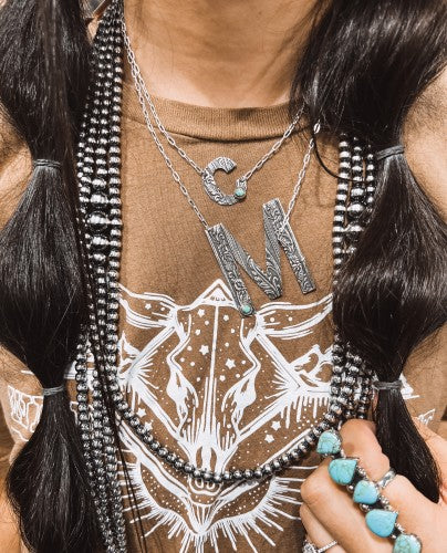 1" Stamped + Turquoise Initial Dainty Chain Necklace