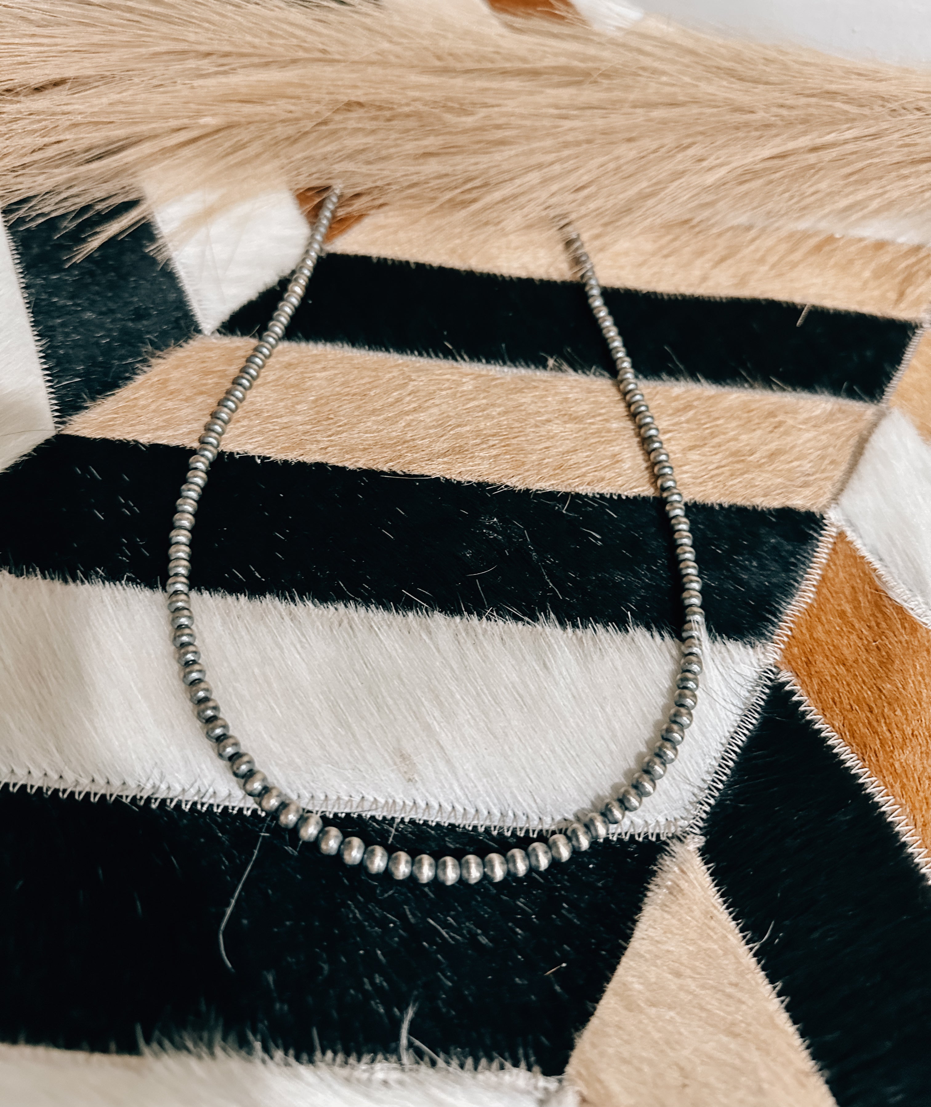 Get ready to be blown away by this incredible 24" necklace made from authentic .925 Sterling Silver 5mm Navajo Pearls. Each pearl is carefully hand-crafted and designed to create a piece that is truly stunning and guaranteed to leave a lasting impression.