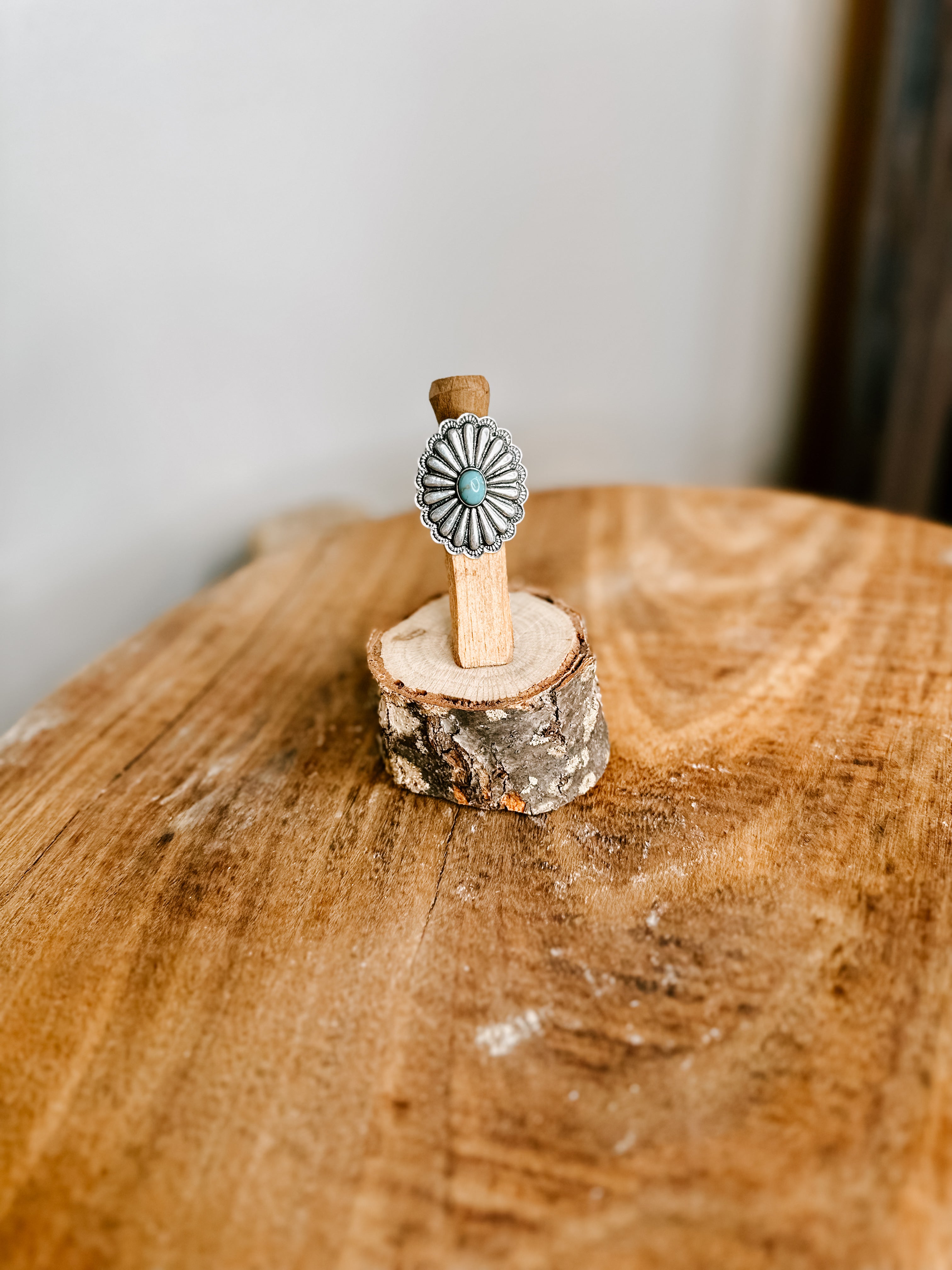 Concho Stamped Adjustable SS + Turq Ring