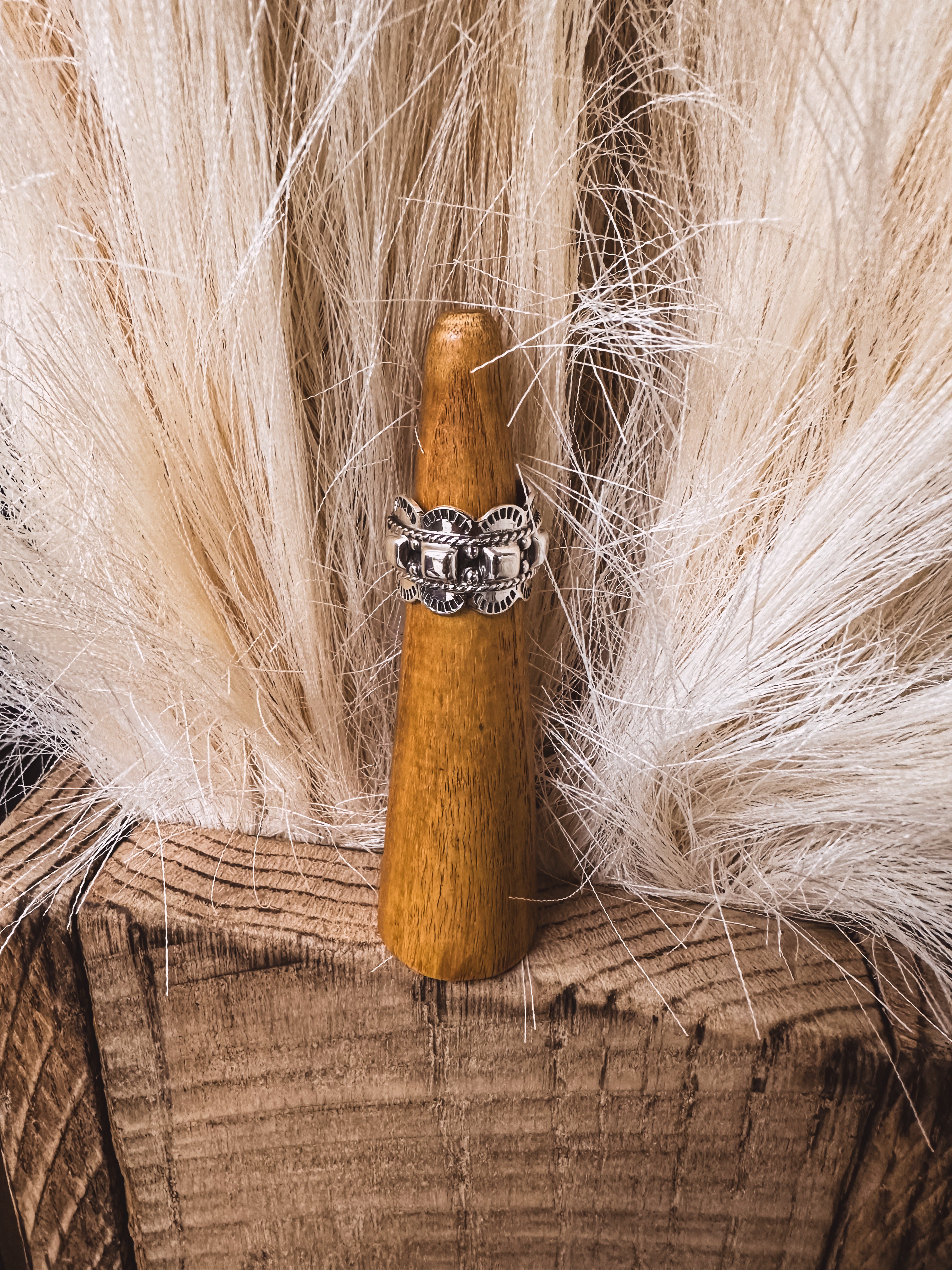 Silver Square Scallop Stamped Ring