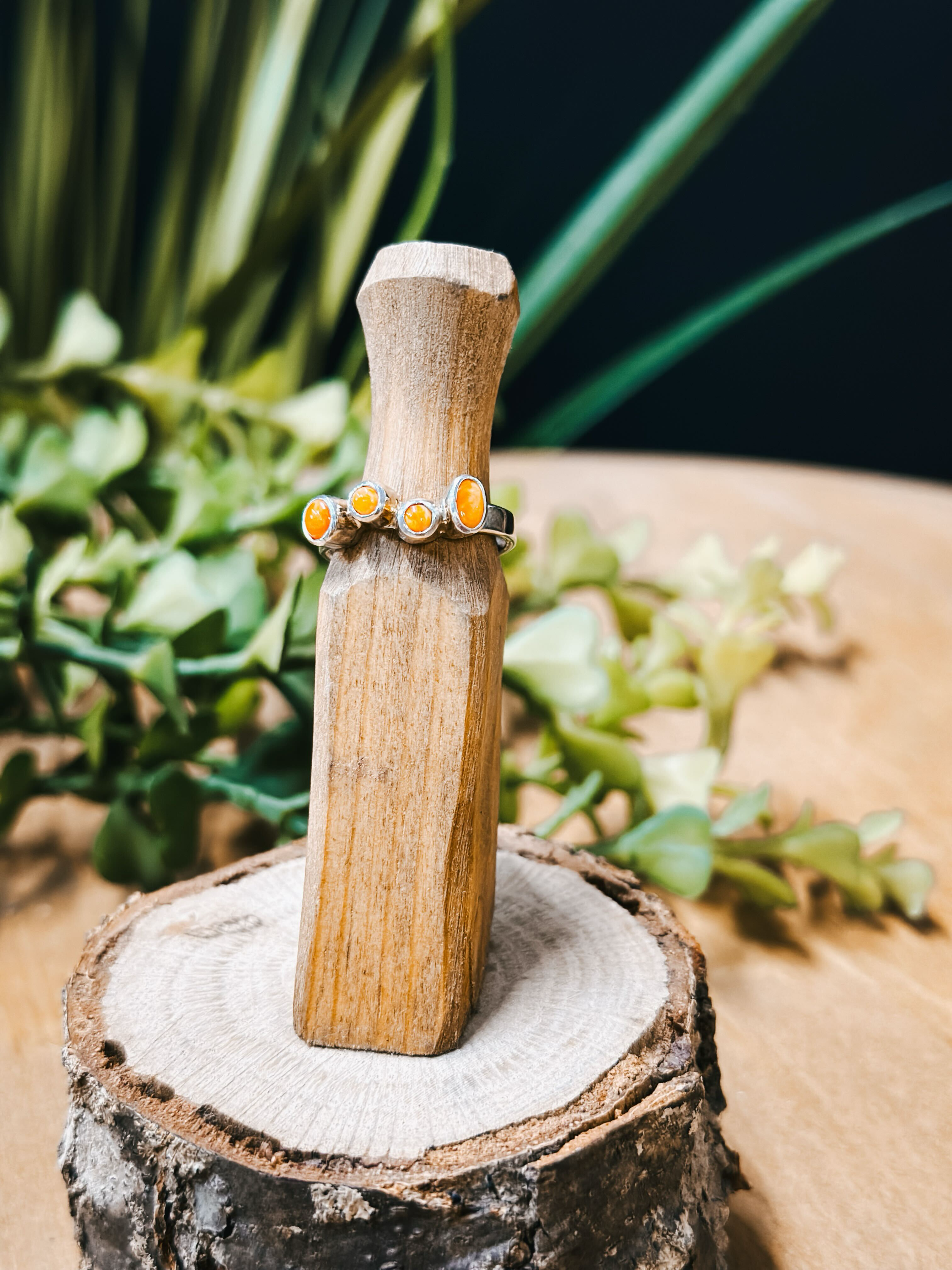 Unleash your individuality with this unique ring crafted from genuine Sterling Silver. Its one of a kind design showcases oval and circular Spiny Oyster stones, set in a chrome-like finish that will surely catch anyone's eye.
