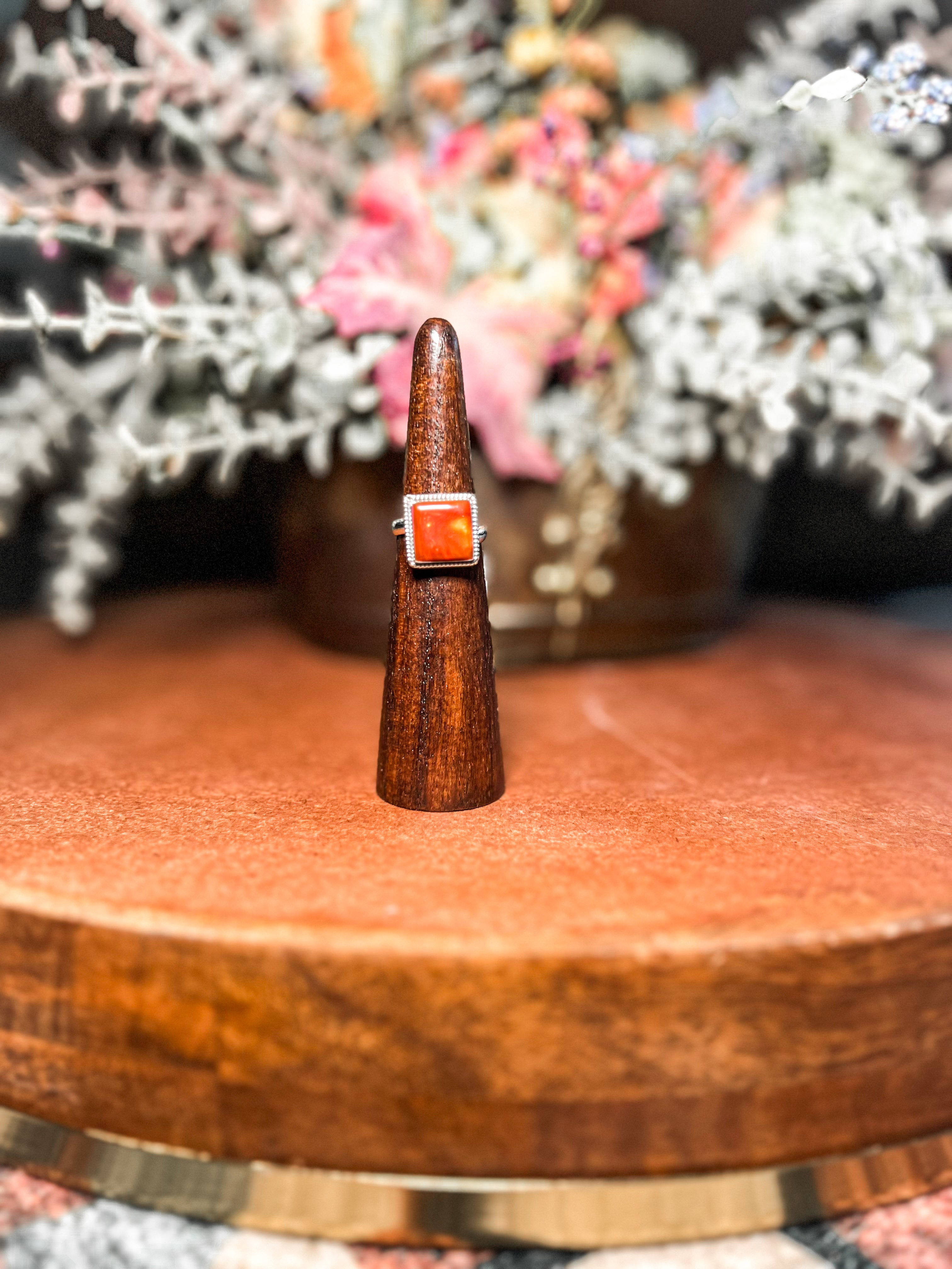 It's The Eye of The Tiger in this Amber Tiger's Eye Square Adjustable Ring!