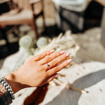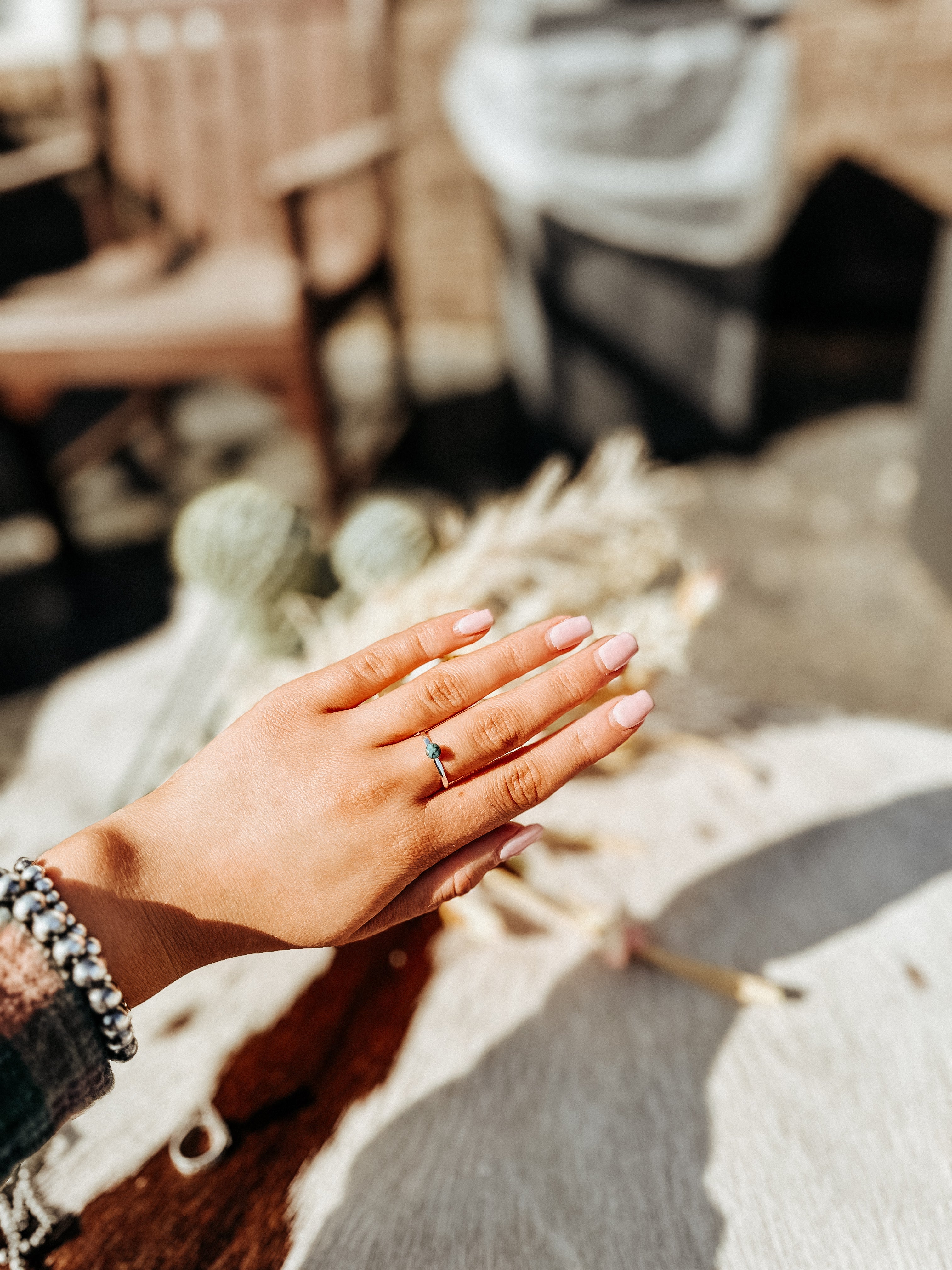 This petite yet powerful Sterling Silver ring shines with a chrome-like finish and showcases a delicate, genuine Kingman Turquoise stone. Tiny but striking, it’s a stylish little gem that truly stands out!