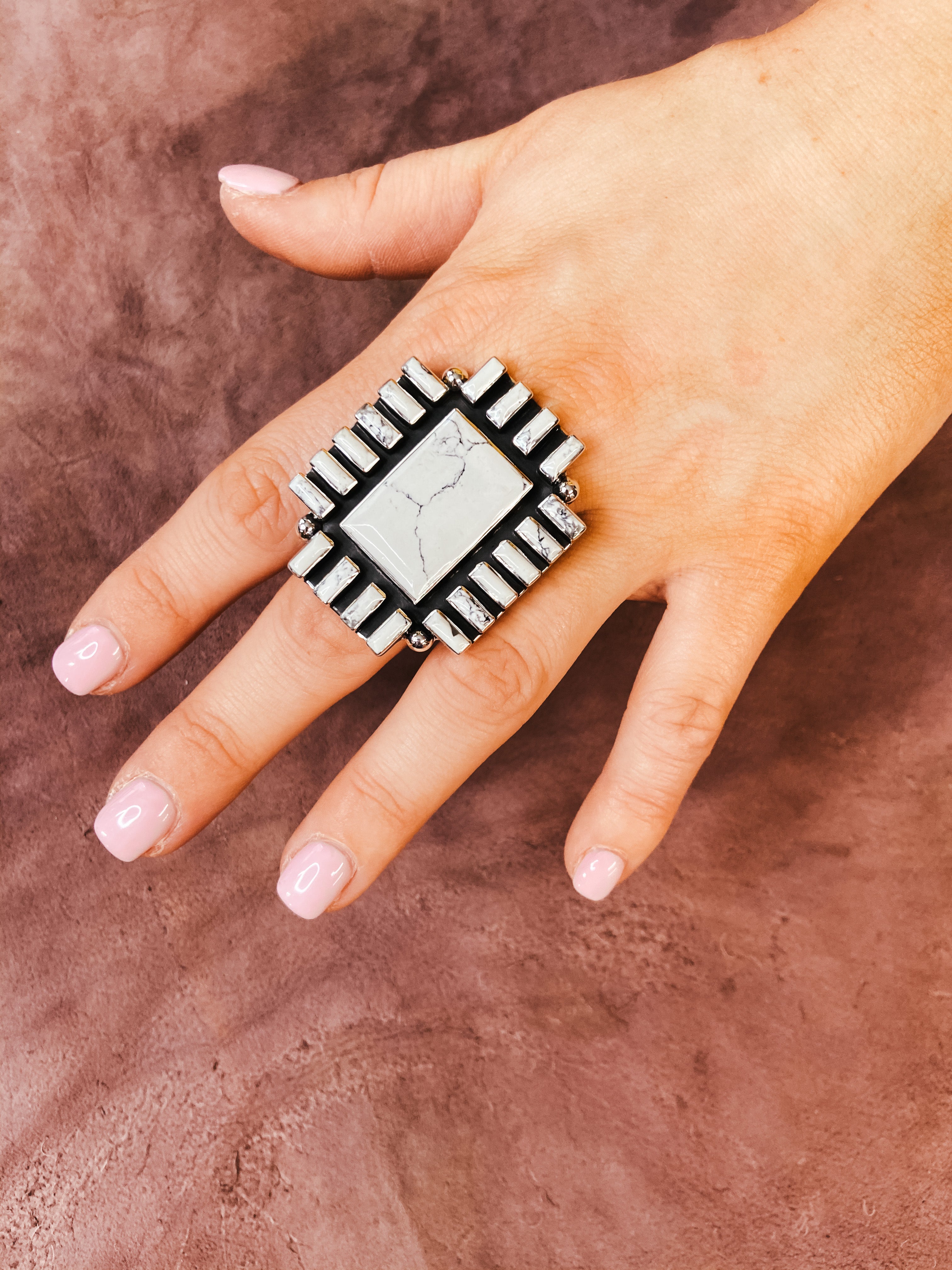 This Ring Pops! Sterling Silver & Genuine White Turquoise Oversized Adjustable Ring
