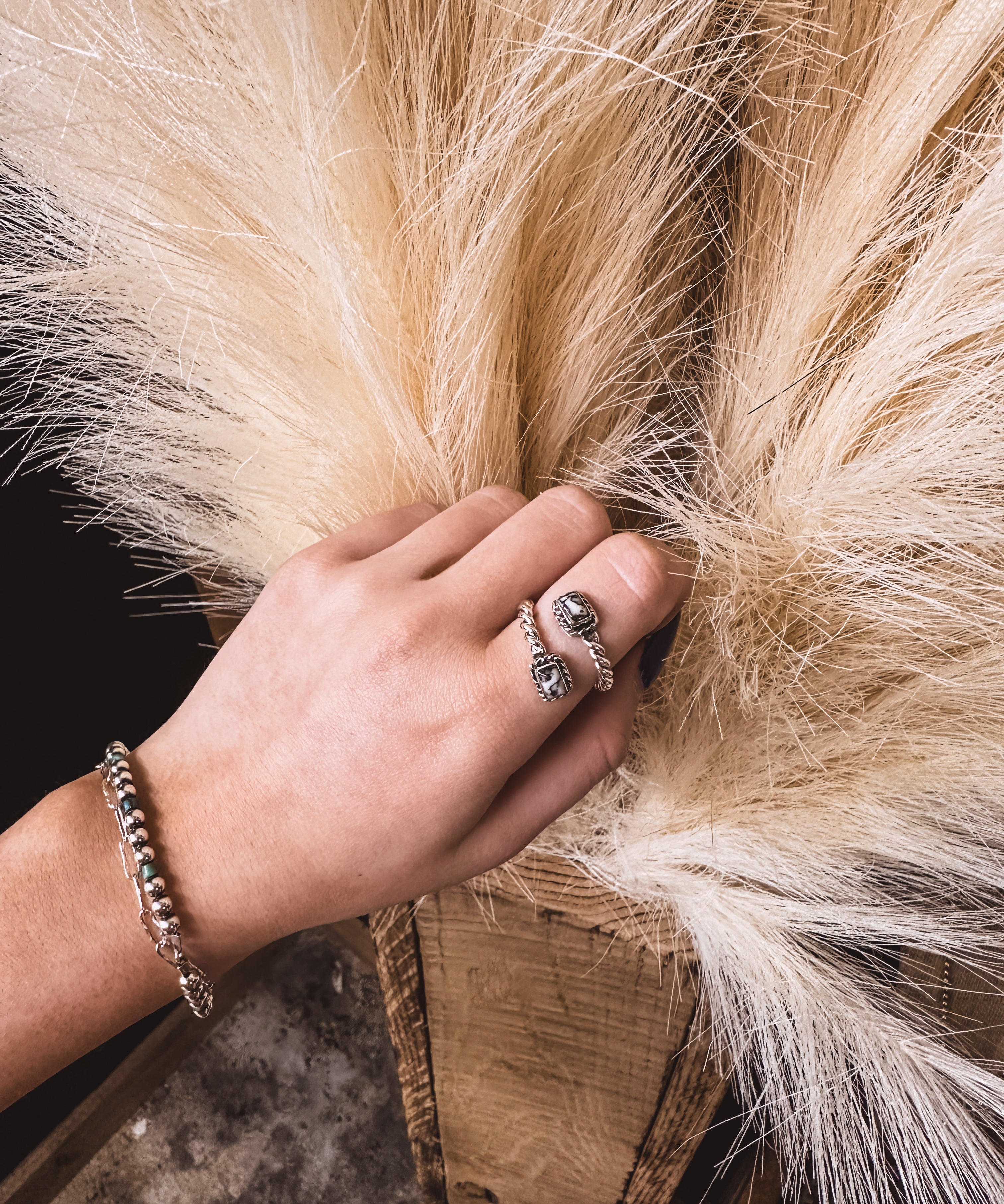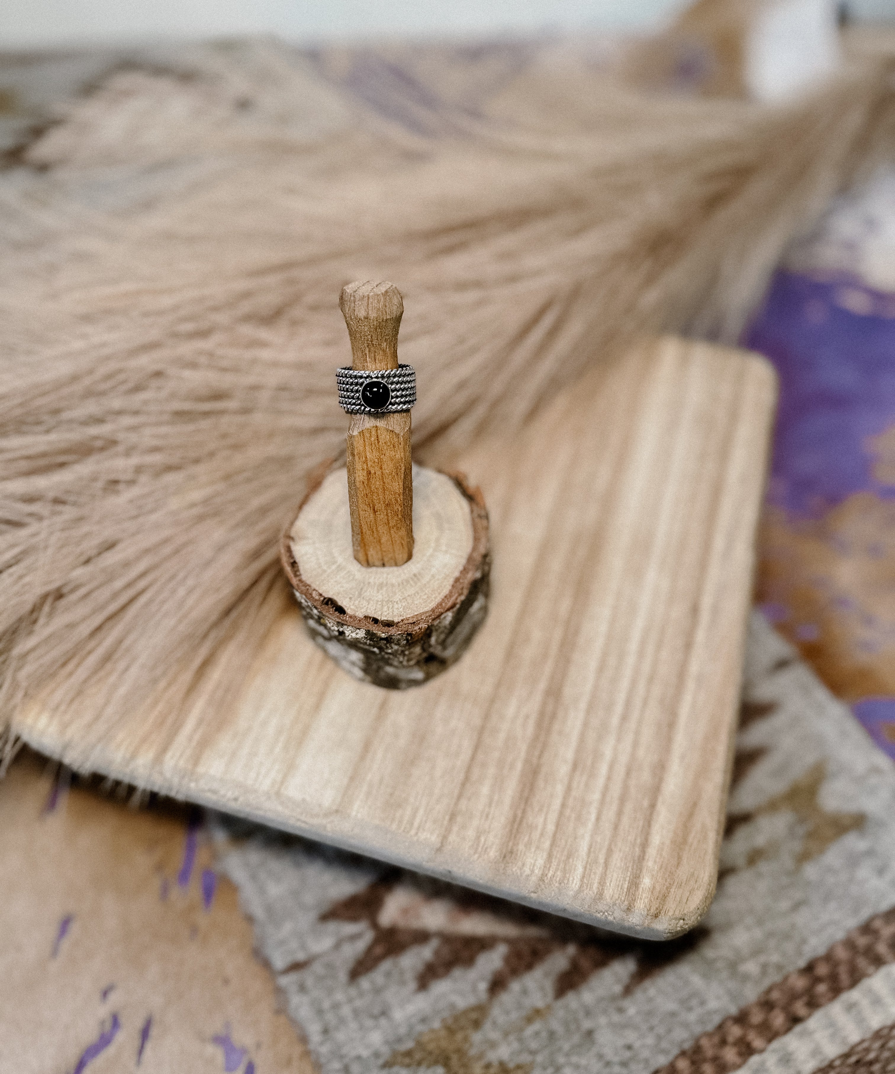 Onyx + Tigers Eye/Amber Chip Oval SS Bangle