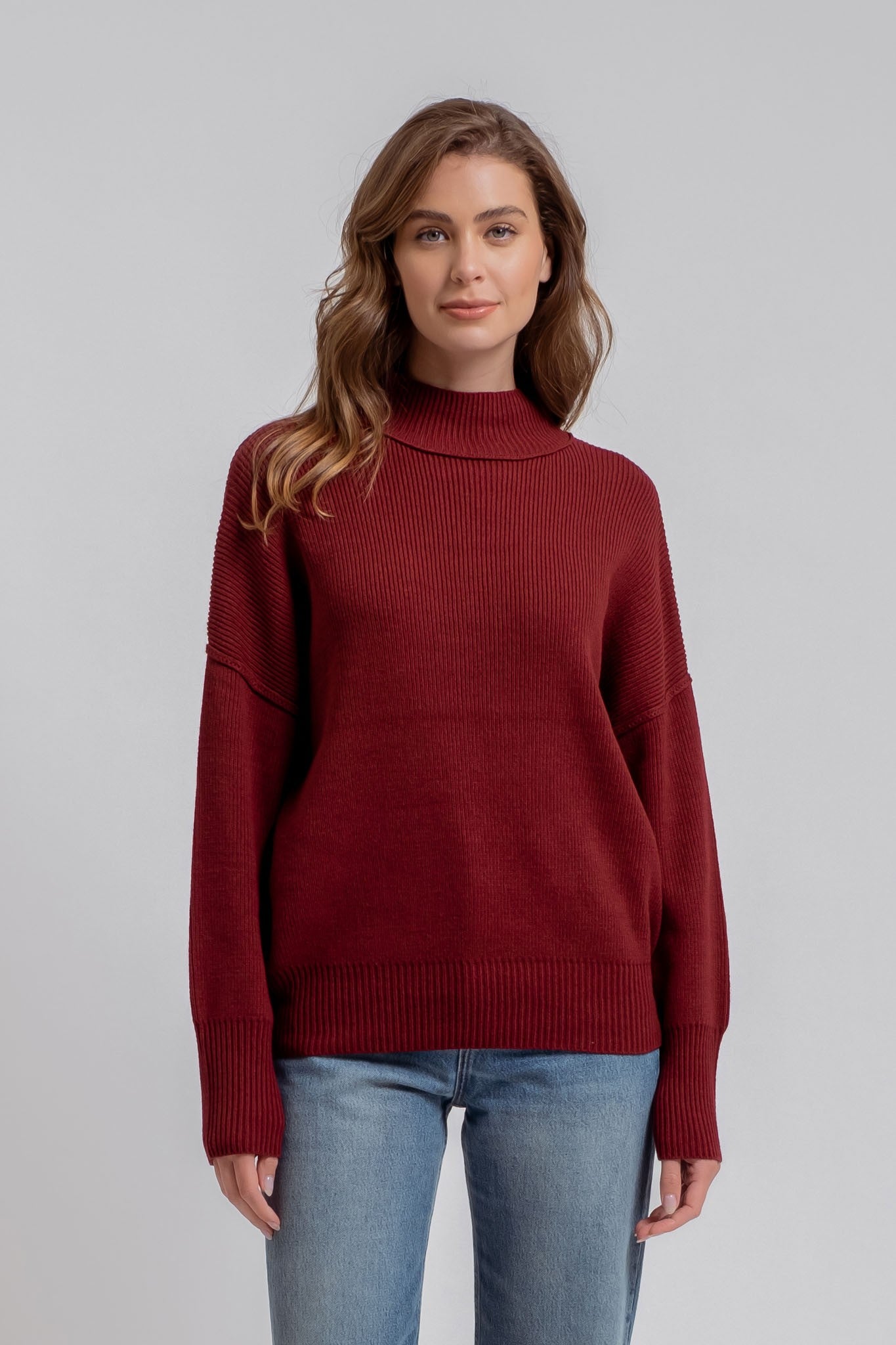 Combining comfort and style, this ribbed sweater features a cozy feel with a chic mock neck, exposed arm seams, and a laid-back fit. Perfect for any trendsetter looking to boost her closet, it pairs effortlessly with tailored pants, flowy skirts, or your go-to jeans. Why settle for one? Snap up several in all the colors and mix it up!