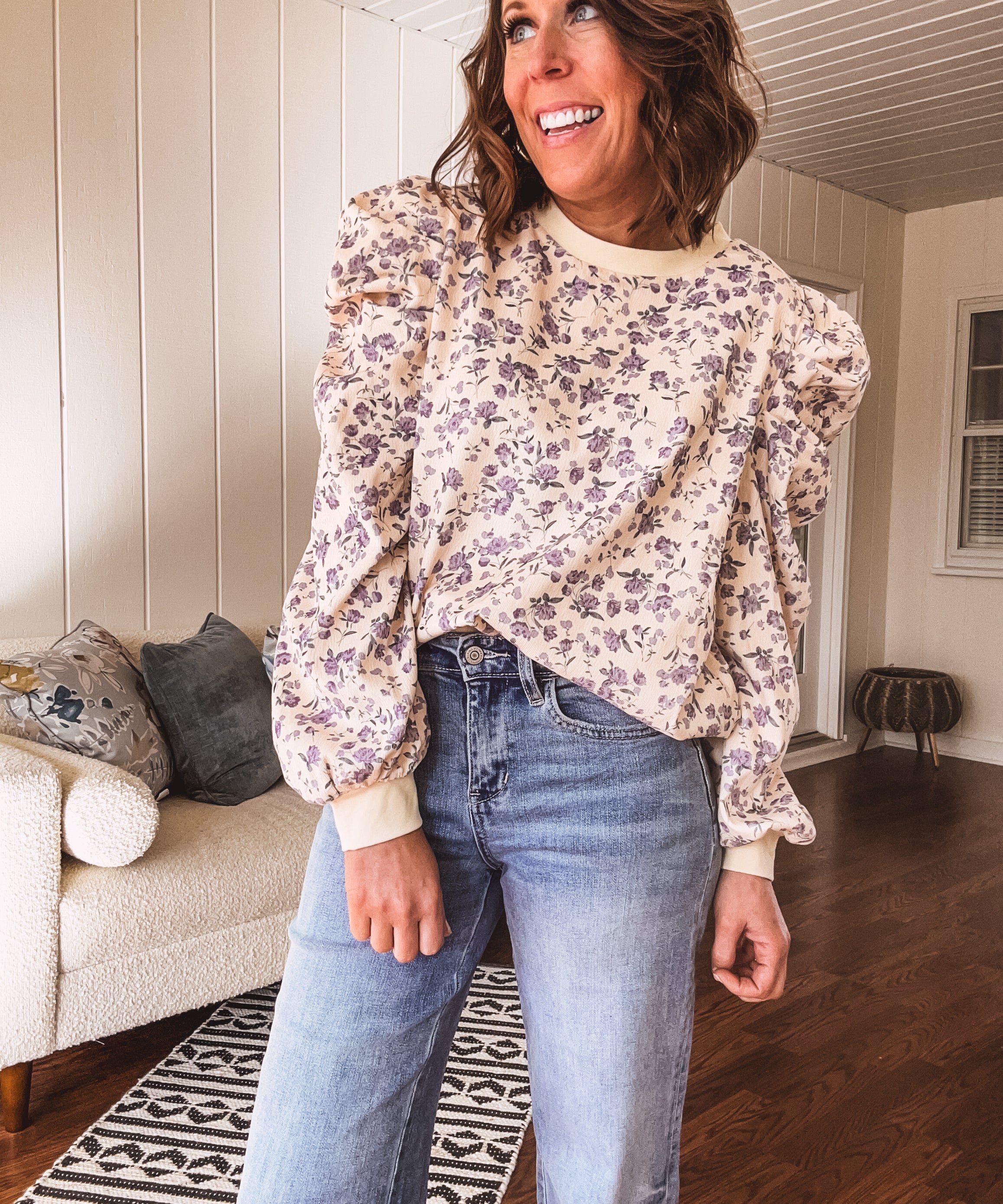 Burnt Topaz Chenille Mock Neck Balloon Sleeve Sweater