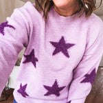 Lavender Star Textured Knit Pullover