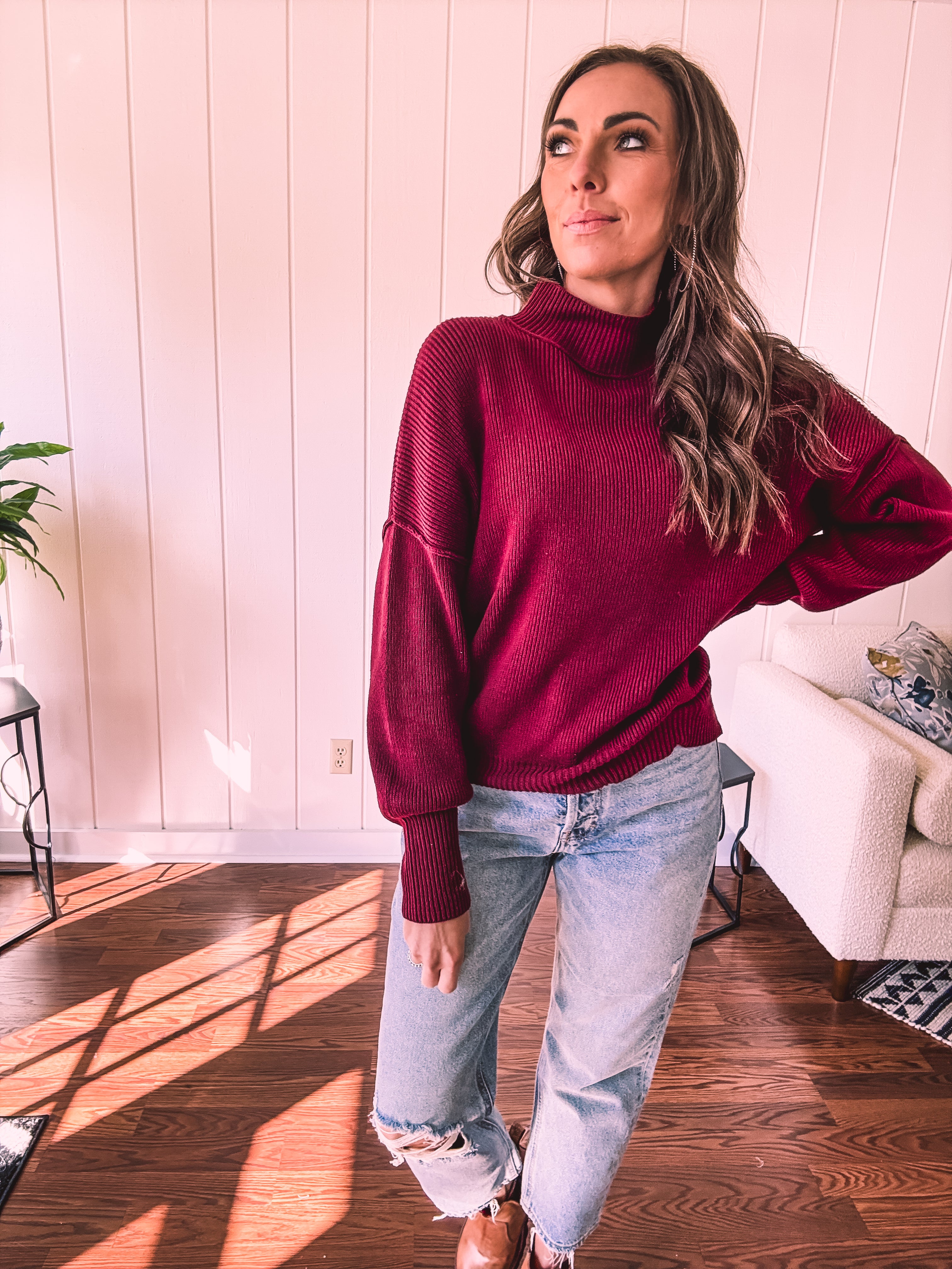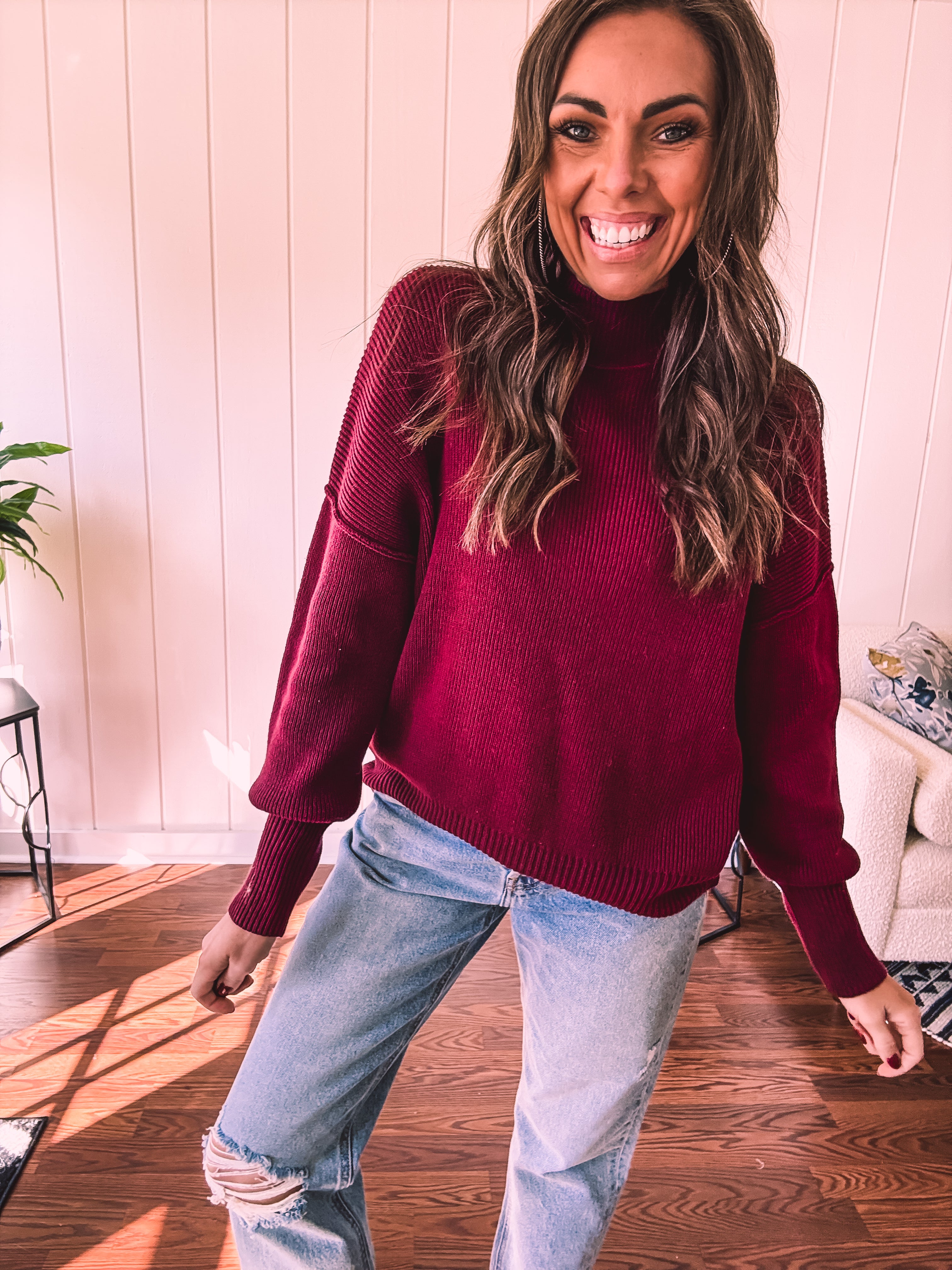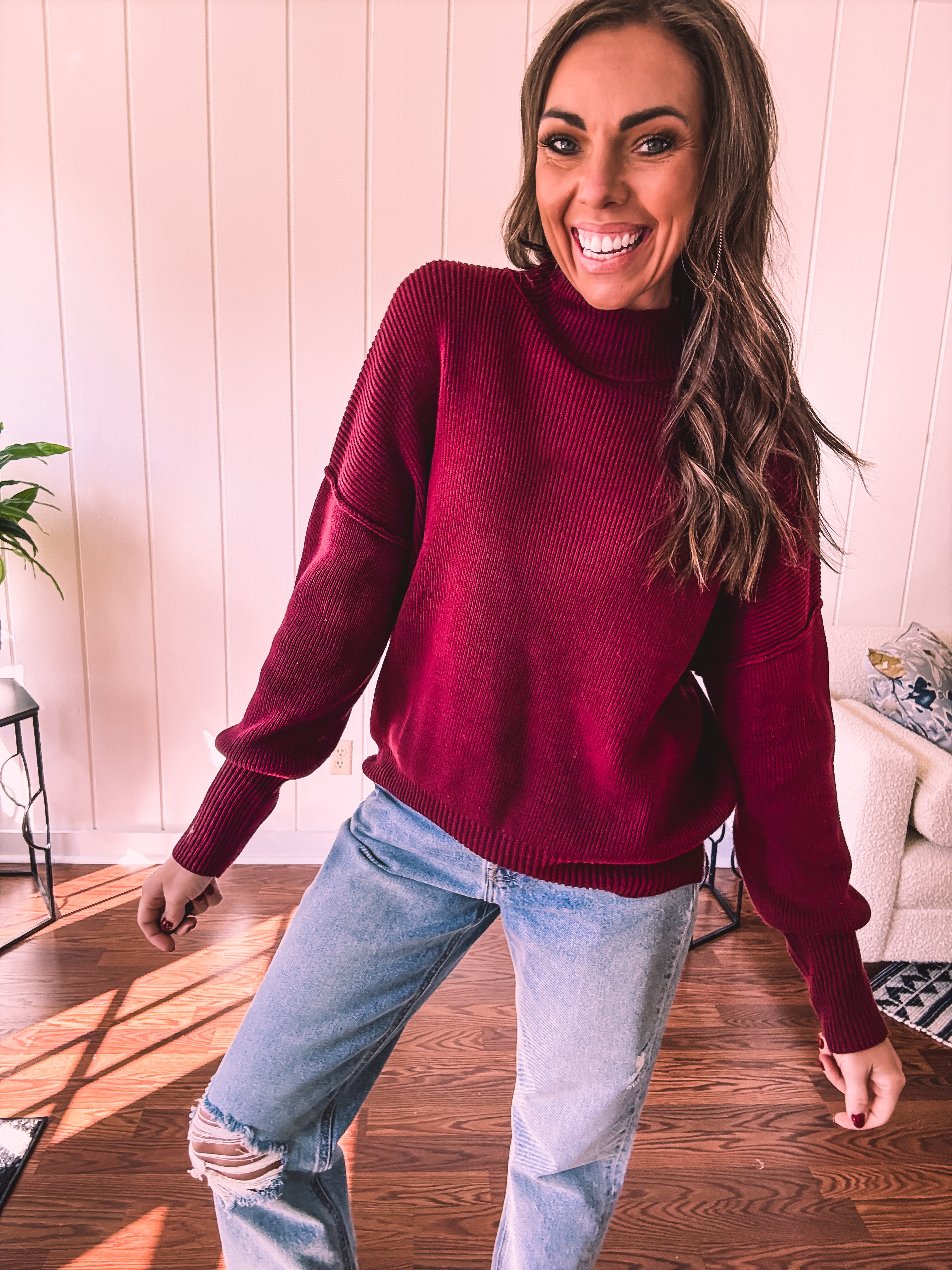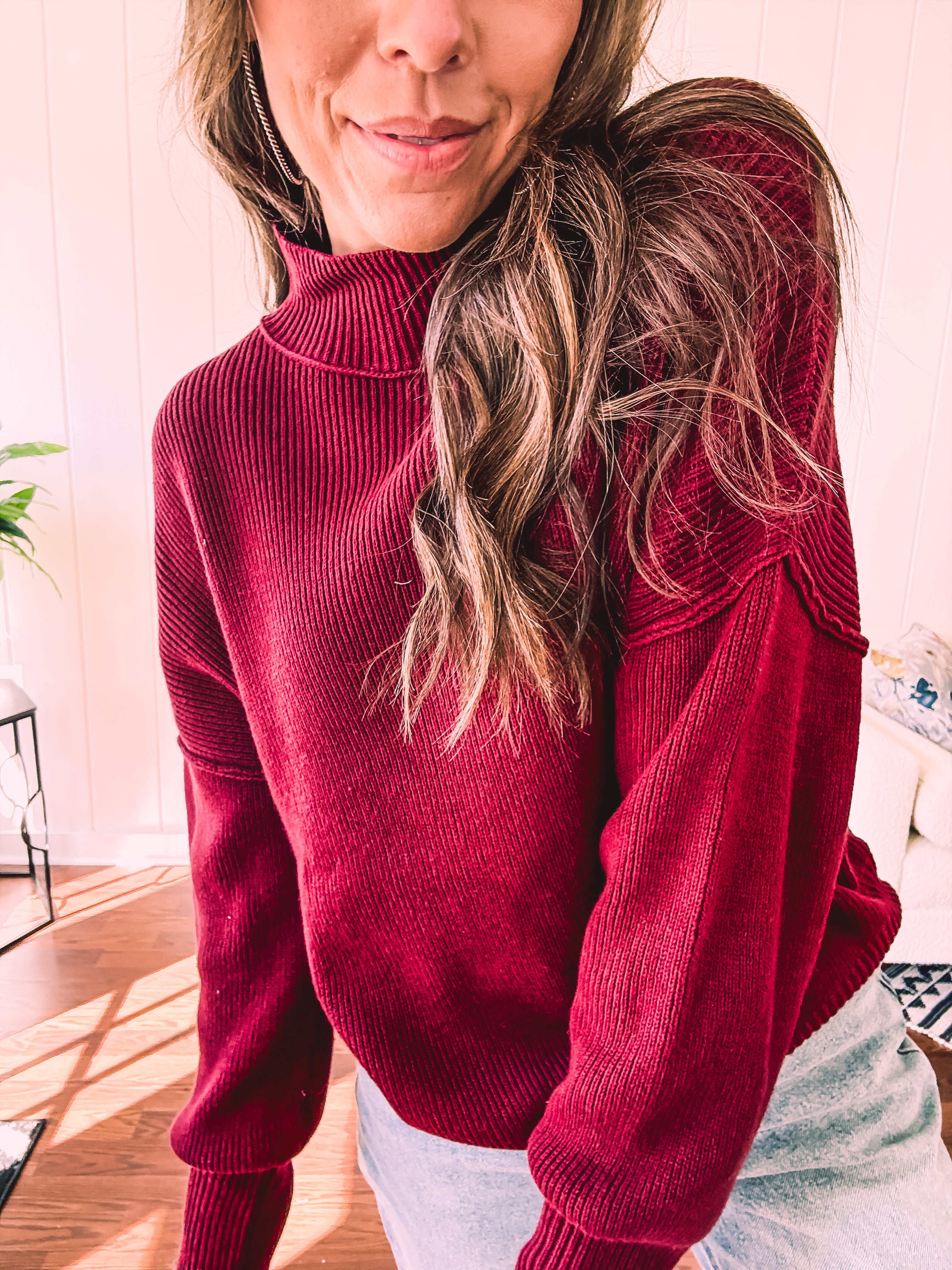 Combining comfort and style, this ribbed sweater features a cozy feel with a chic mock neck, exposed arm seams, and a laid-back fit. Perfect for any trendsetter looking to boost her closet, it pairs effortlessly with tailored pants, flowy skirts, or your go-to jeans. Why settle for one? Snap up several in all the colors and mix it up!