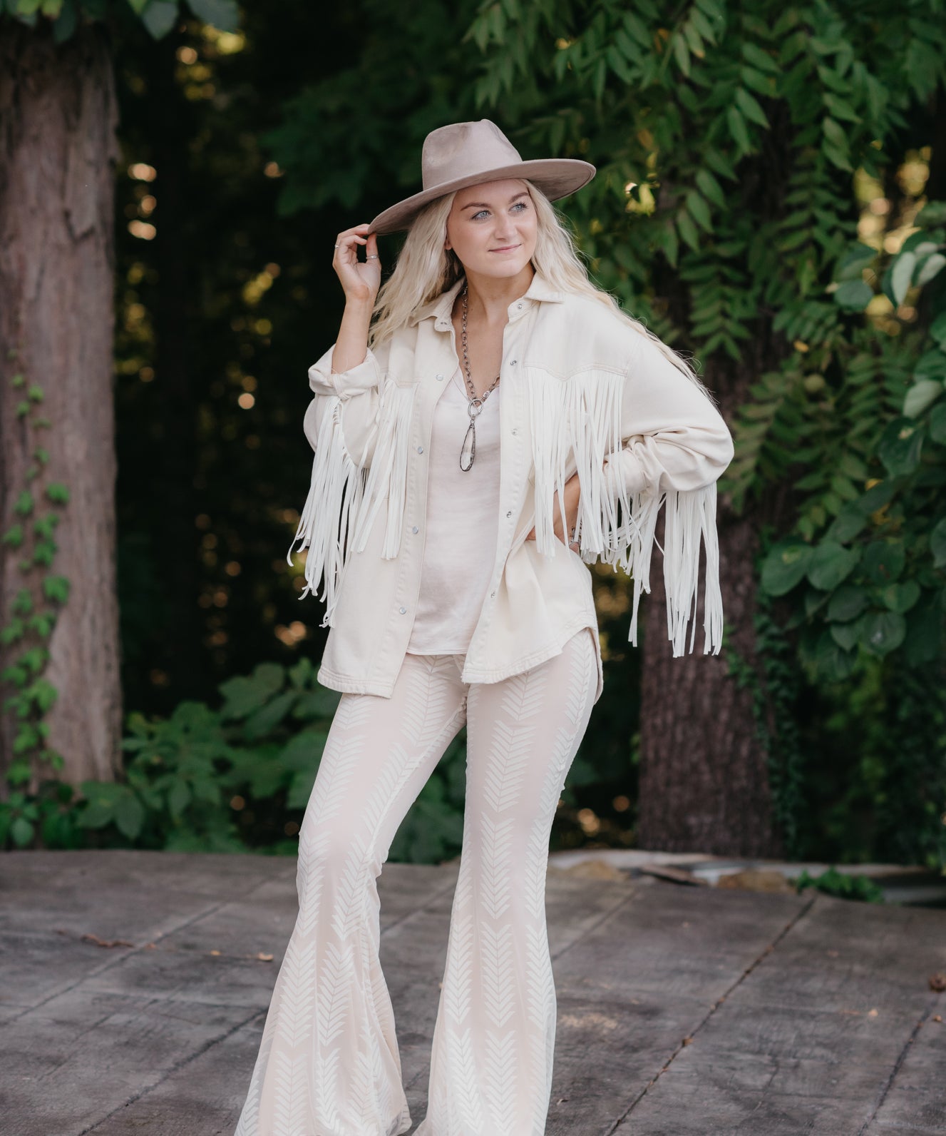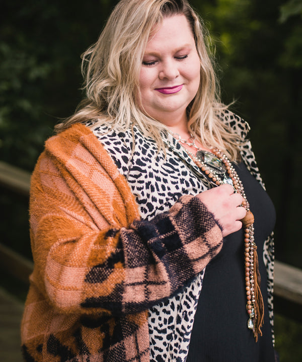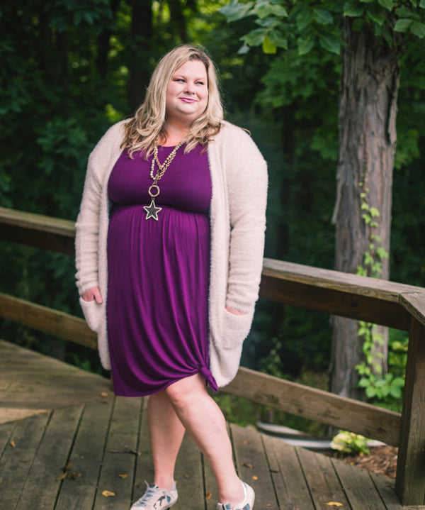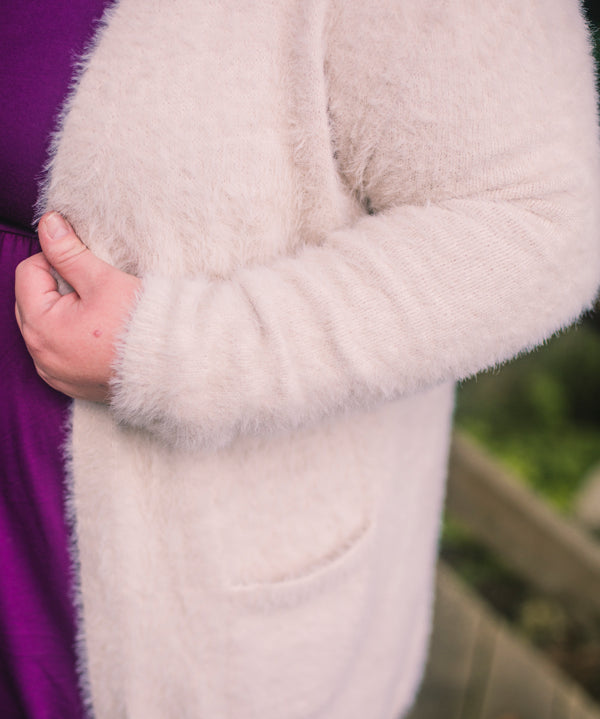 Ecru Fuzzy Knit Caridigan with Front Pockets