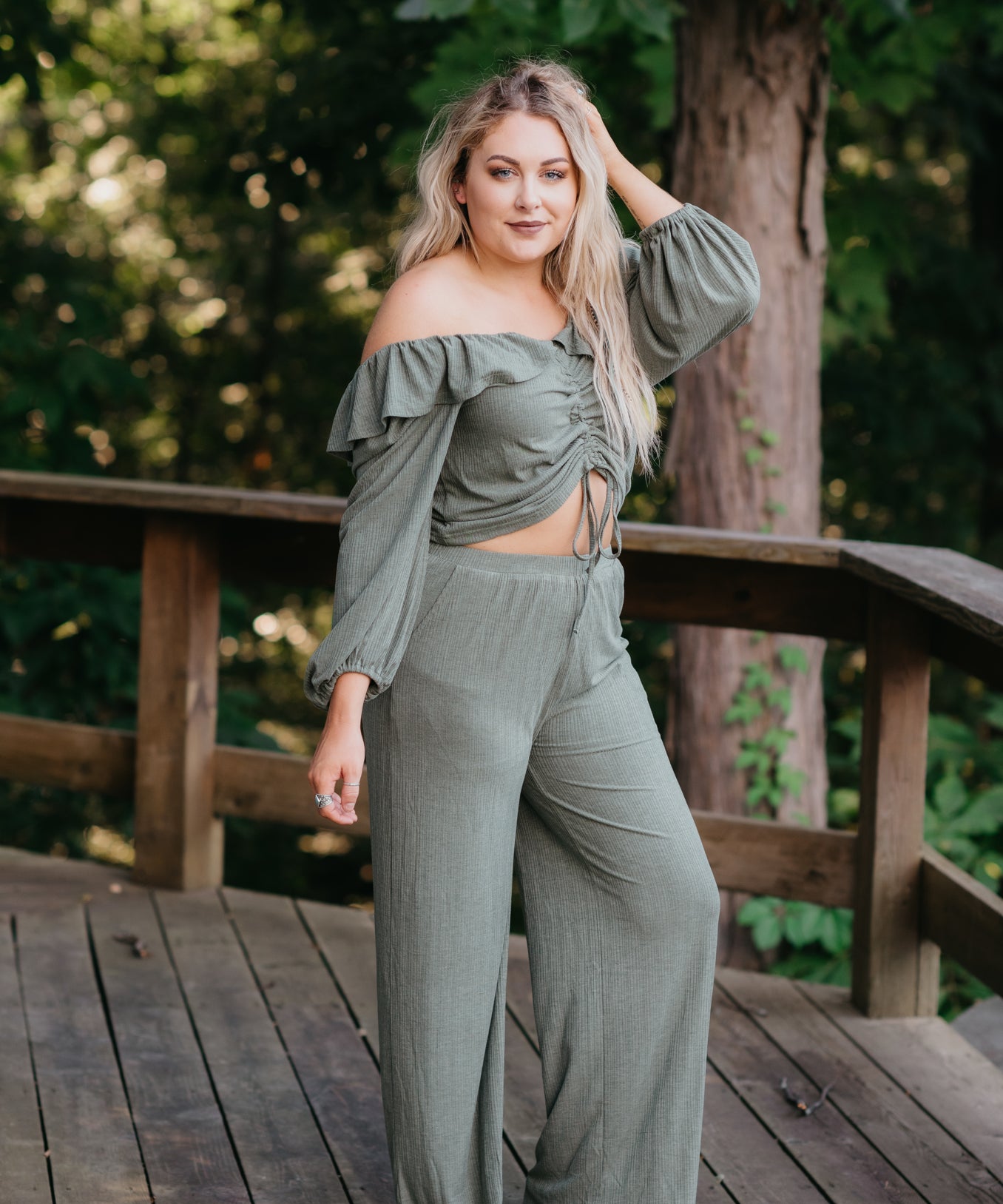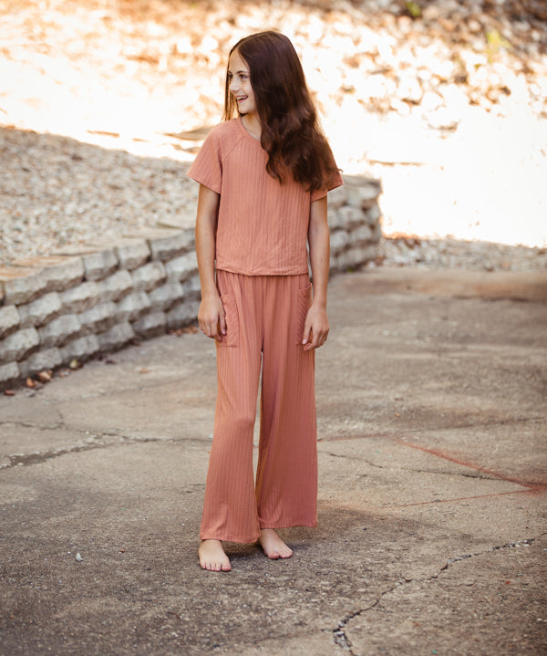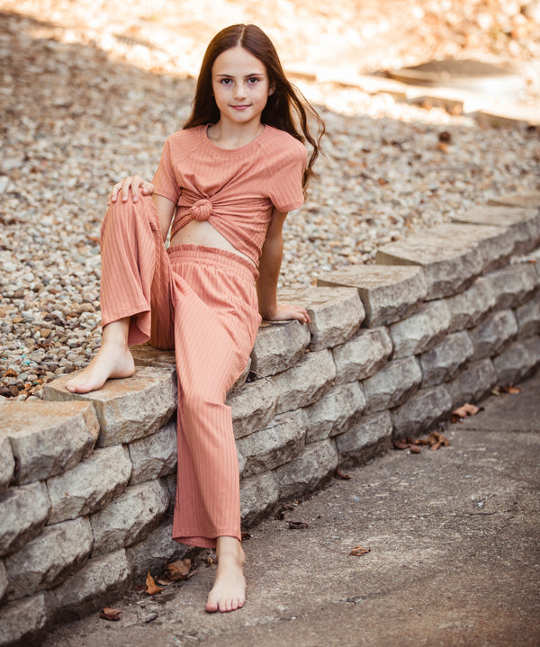 Terra Cotta Leo Print Wide Leg Pant with Waist Tie