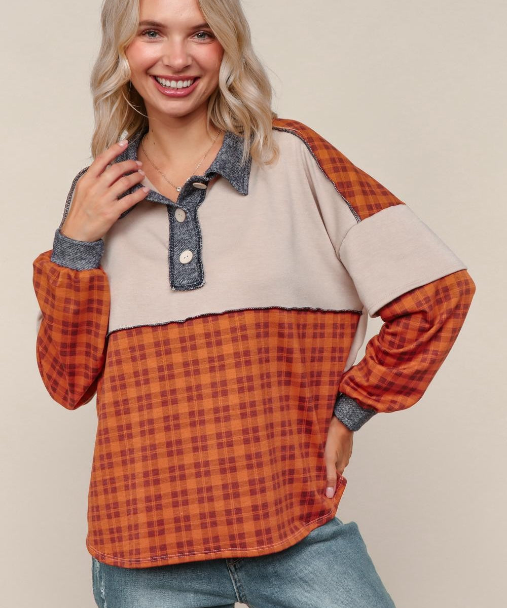 Harvest Plaid Collared Pullover