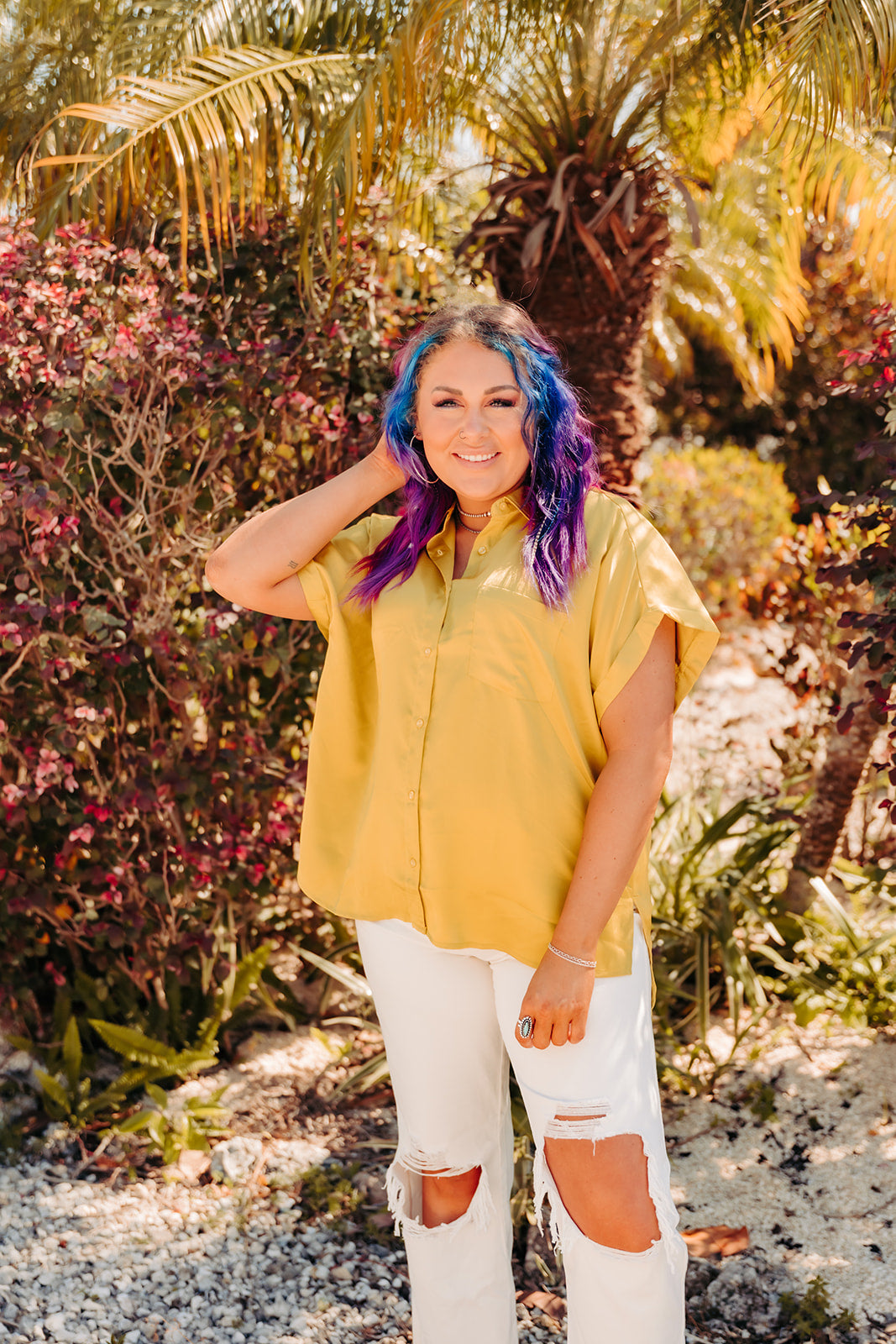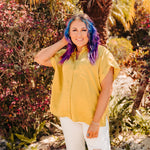 Chartreuse Satin Button Front Pocket Top